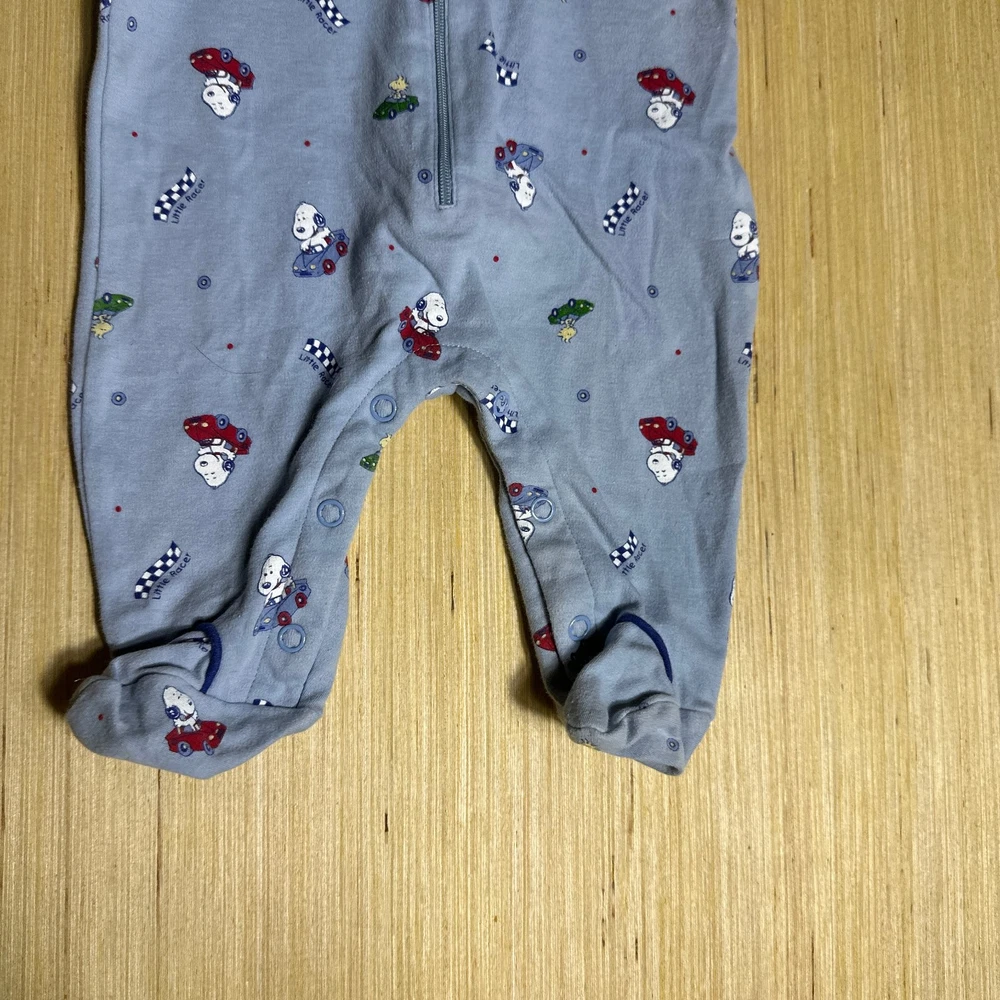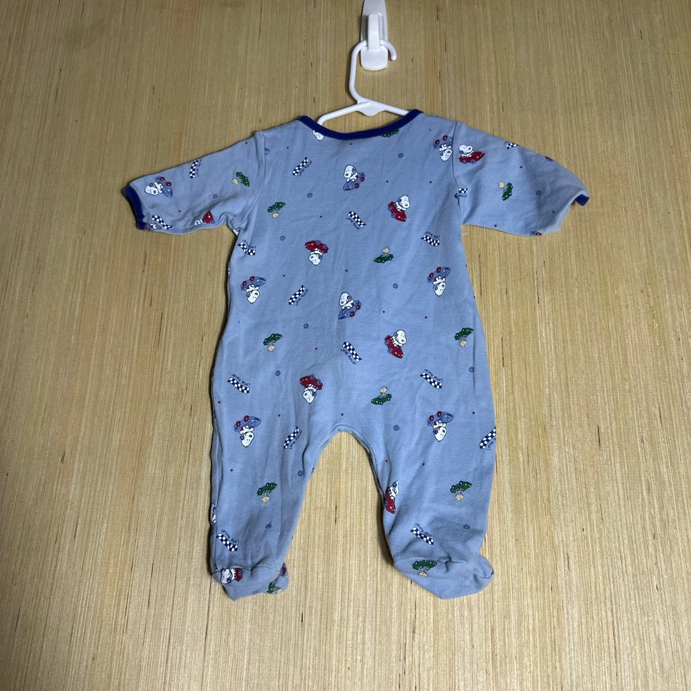 This Vintage Y2K Baby Snoopy Zip Up Outfit in solid blue is perfect for unisex babies aged 0-3 months and weighing 6-12 lbs. Made from a comfortable cotton blend fabric, this one-piece bodysuit features long sleeves, a snap closure, and adjustable straps. The outfit is machine washable and includes a cute Snoopy character design, making it ideal for casual occasions during the summer and spring seasons. With its 80s and 90s cartoon theme and Peanuts brand, this vintage outfit offers both style and comfort for little ones.