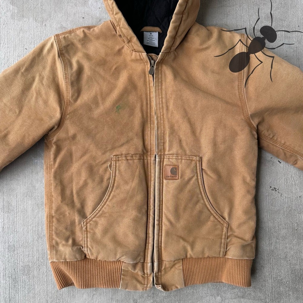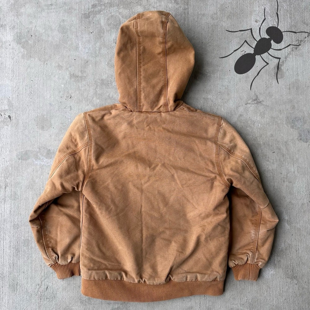 Vintage Y2K YOUTH Carhartt brown quilted hooded work wear jacket. Some light staining. Youth sized M may fit a smaller adult. Measures 19x24. Please check measurements before purchasing. I do my best to show any flaws in pictures. Quick shipping! Bundles encouraged! @ants_haul on Instagram. J0132!!!