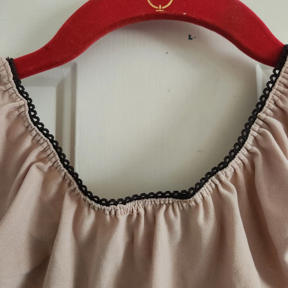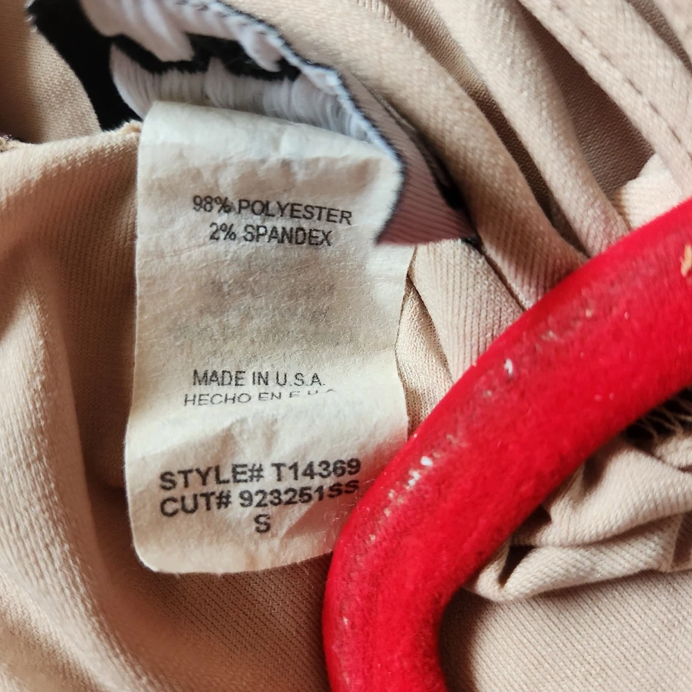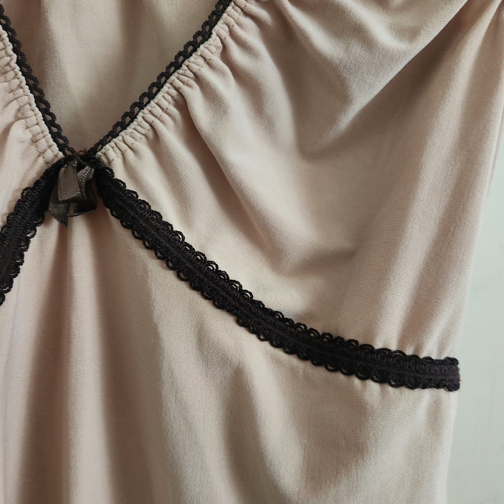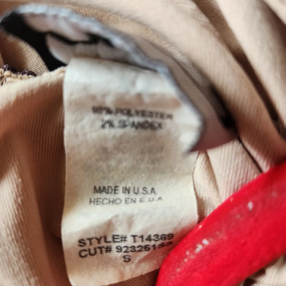 The Vintage Y2K Rave Women's Top in beige with brown trim is a stylish and trendy piece perfect for casual occasions. This sleeveless blouse features a V-neckline and is made from a comfortable polyester blend material. With a size small fit and a regular size type, this top is a basic style ideal for the summer and spring seasons. The tie back shirt design adds a unique touch to the overall look, making it a standout piece in any wardrobe. Machine washable for easy care, this vintage item from the brand Rave is a must-have for any fashion-forward woman.