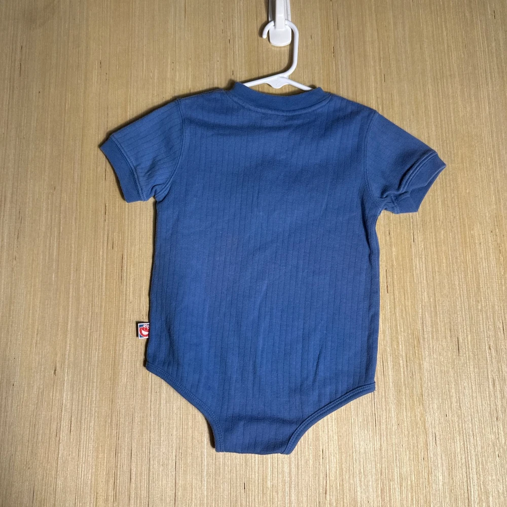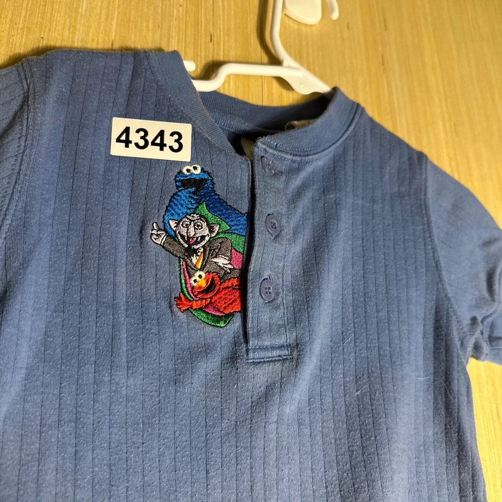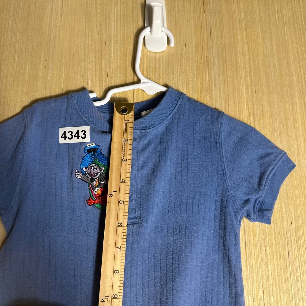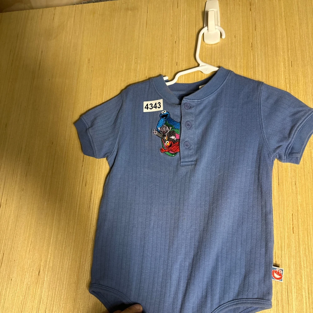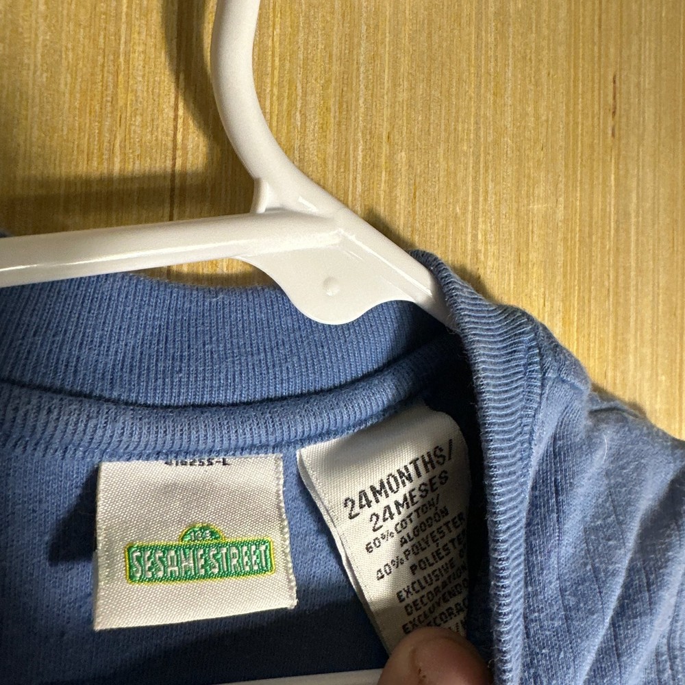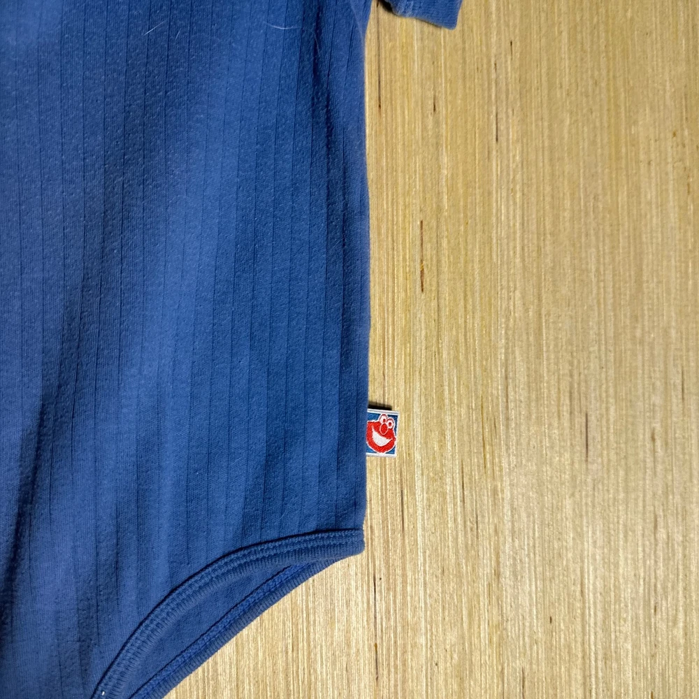 This Vintage Y2K Sesame Street Snap Bodysuit in blue featuring Count Dracula design is perfect for kids aged 24 months. Made from 100% cotton, this short sleeve bodysuit with snaps for easy dressing is great for casual occasions. The retro 90s style and TV character theme make it a fun and unique addition to your little one's wardrobe. Easy to care for with machine washable instructions, this onesie is a nostalgic and stylish choice for your child.