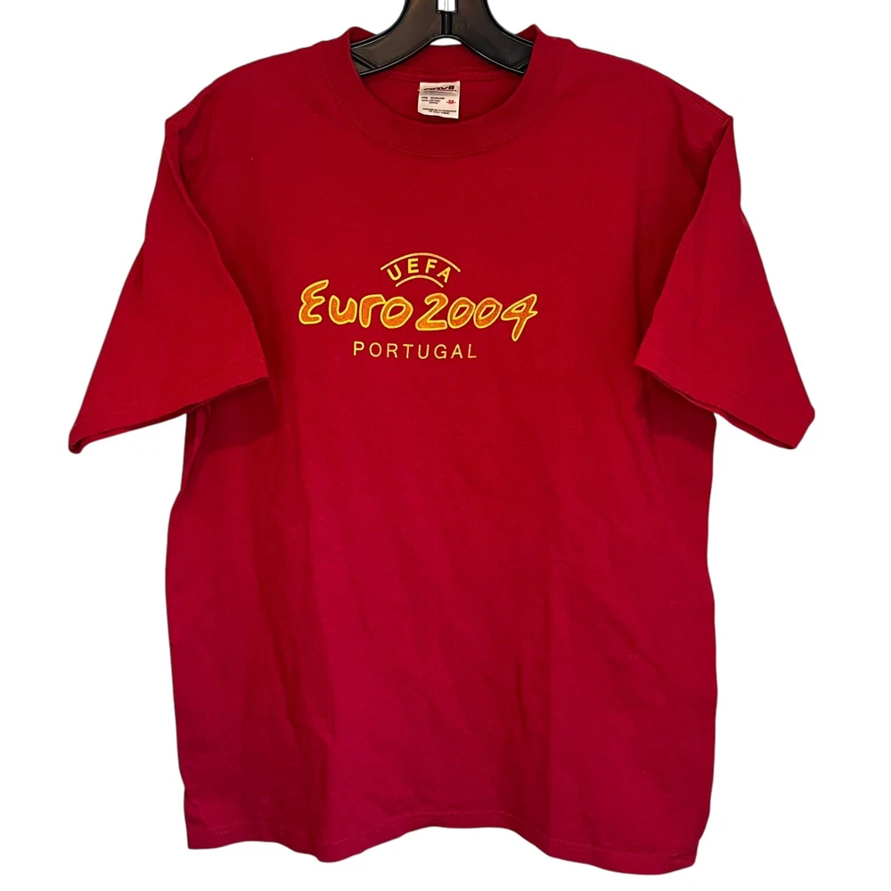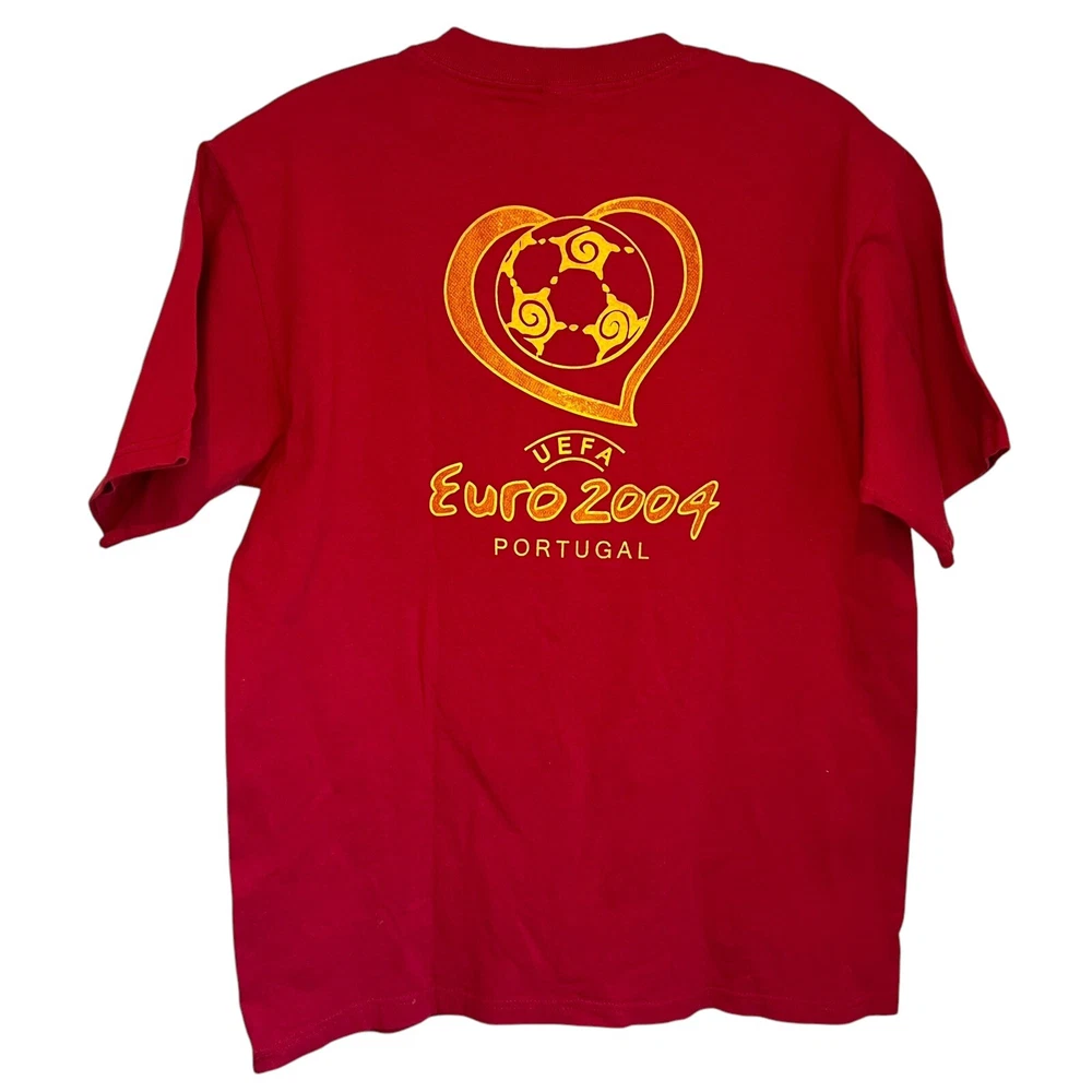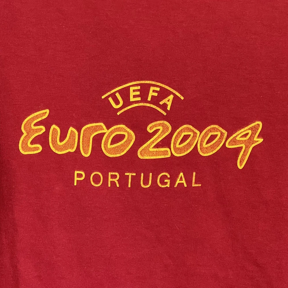 Vintage Y2K UEFA Portugal Euro 2004 Soccer Football Red T-Shirt - Size Medium