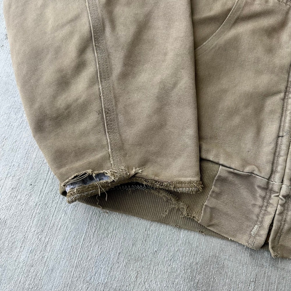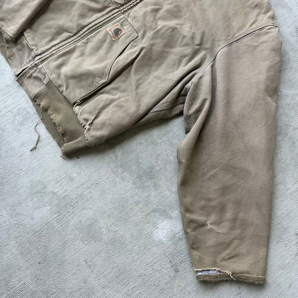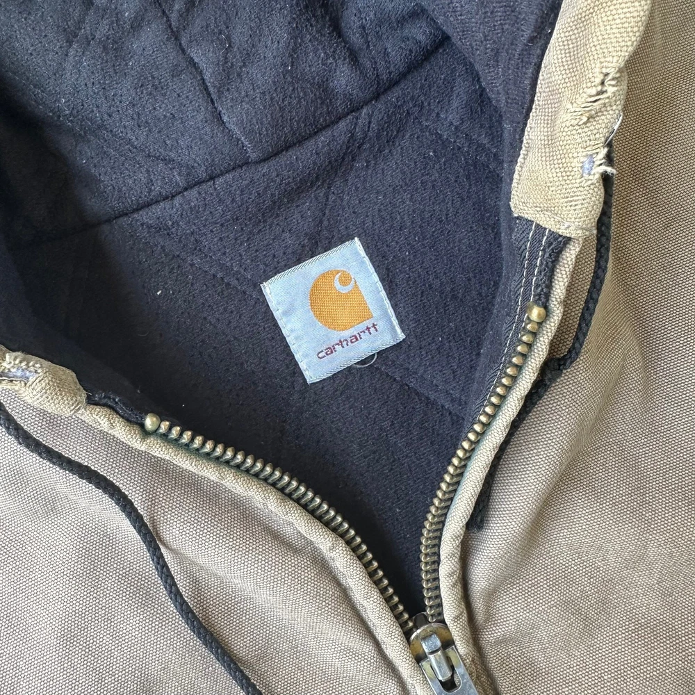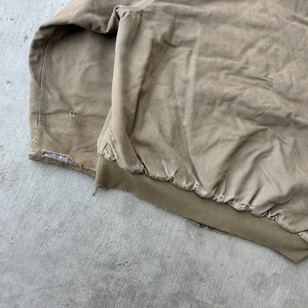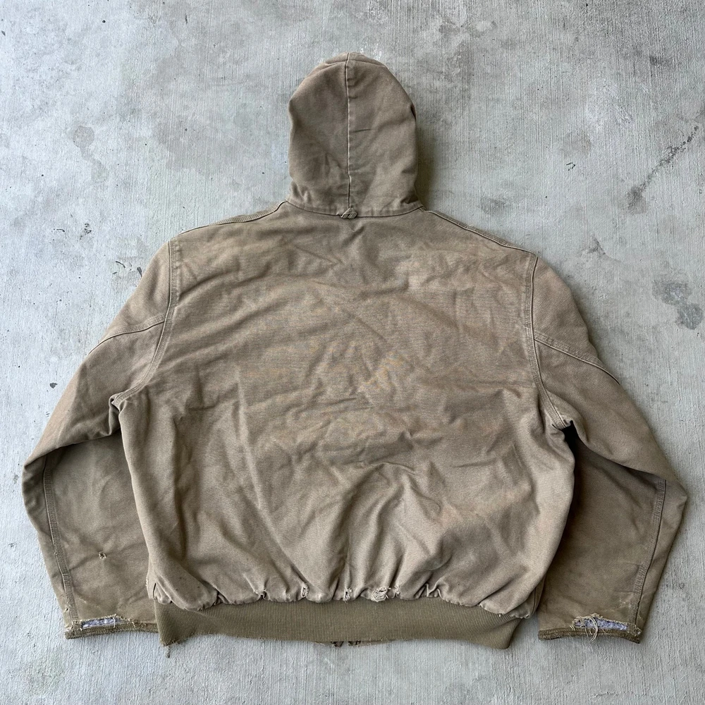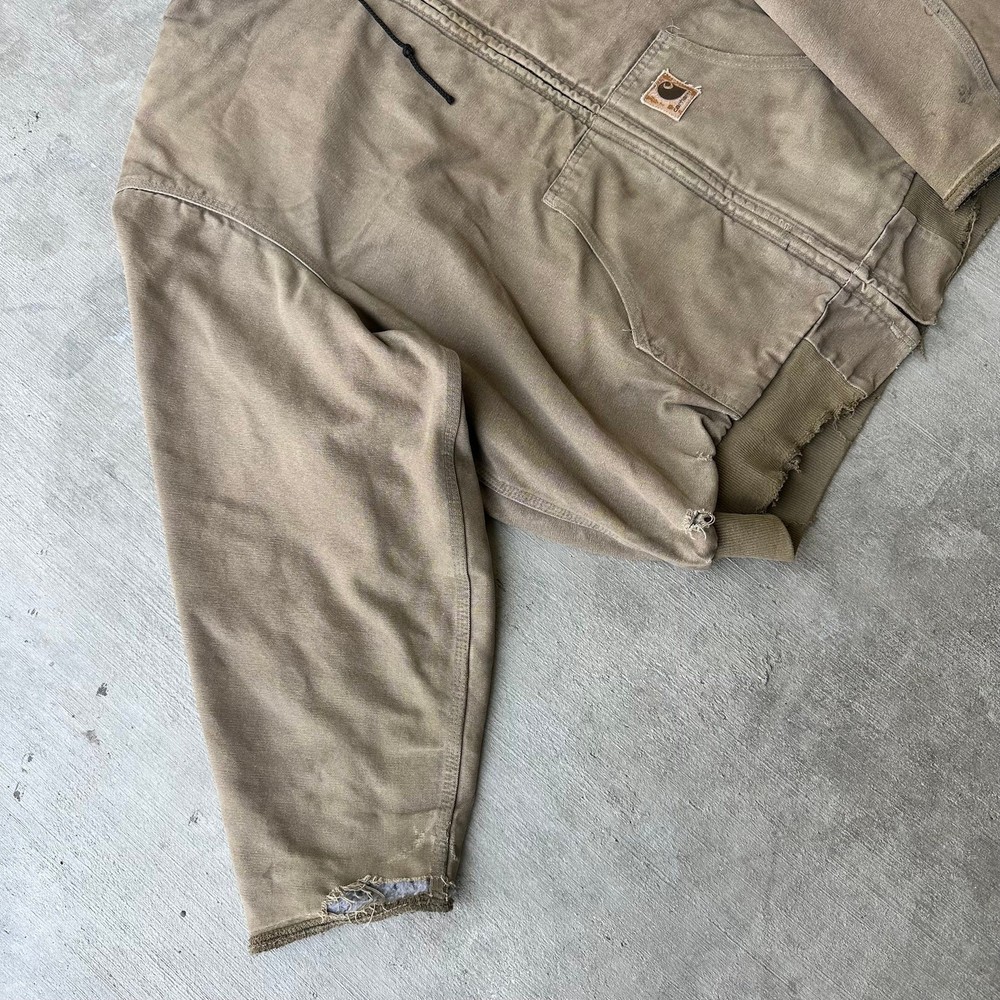 Vintage Y2K brown DISTRESSED Carhartt hooded work wear jacket. Great wear. Elastic cut off the sleeves. Appear to be cut off and stitched up. Measures 28x29. No tag but fits xl. Please check measurements before purchasing. I do my best to show any flaws in pictures. Quick shipping! Bundles encouraged! @ants_haul on Instagram.