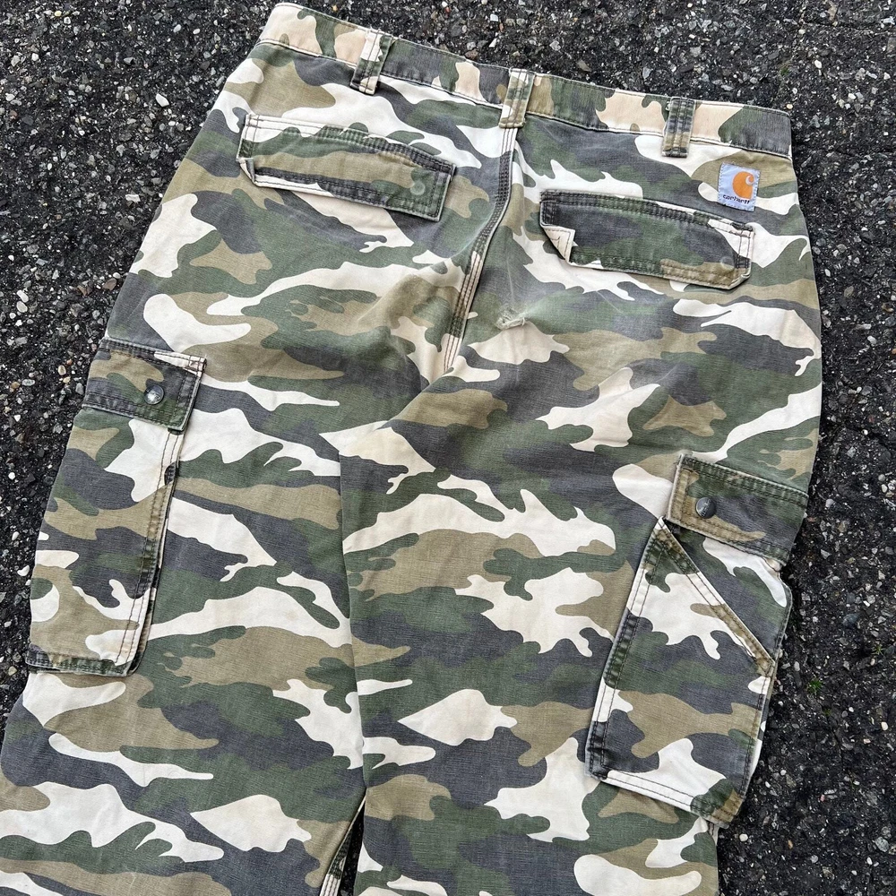 Vintage Y2K camo Carhartt work wear cargo pants. Great pair. Measures 33x29 and a 9.5 leg opening. Please check measurements before purchasing. I do my best to show any flaws in pictures. Quick shipping! Bundles encouraged! @ants_haul on Instagram.