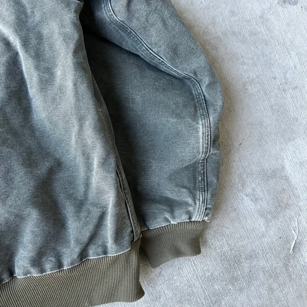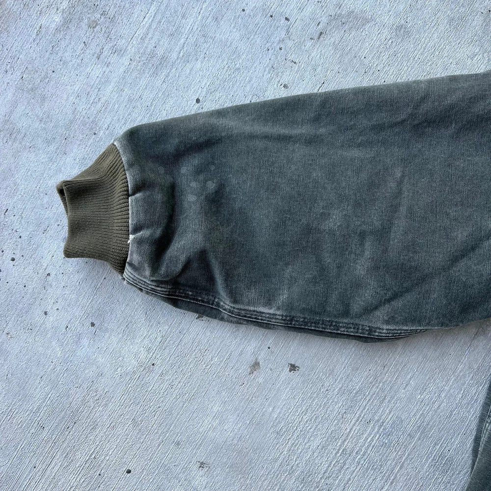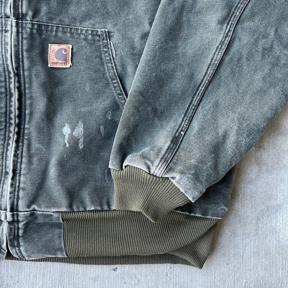 Vintage y2k active green mos carhartt hooded work wear jacket. Really nice jacket! Has some staining but nothing overly crucial. Light lining. Measures 27.5x28. Please check measurements before purchasing. I do my best to show any flaws in pictures. Quick shipping! Bundles encouraged! @ants_haul on Instagram.