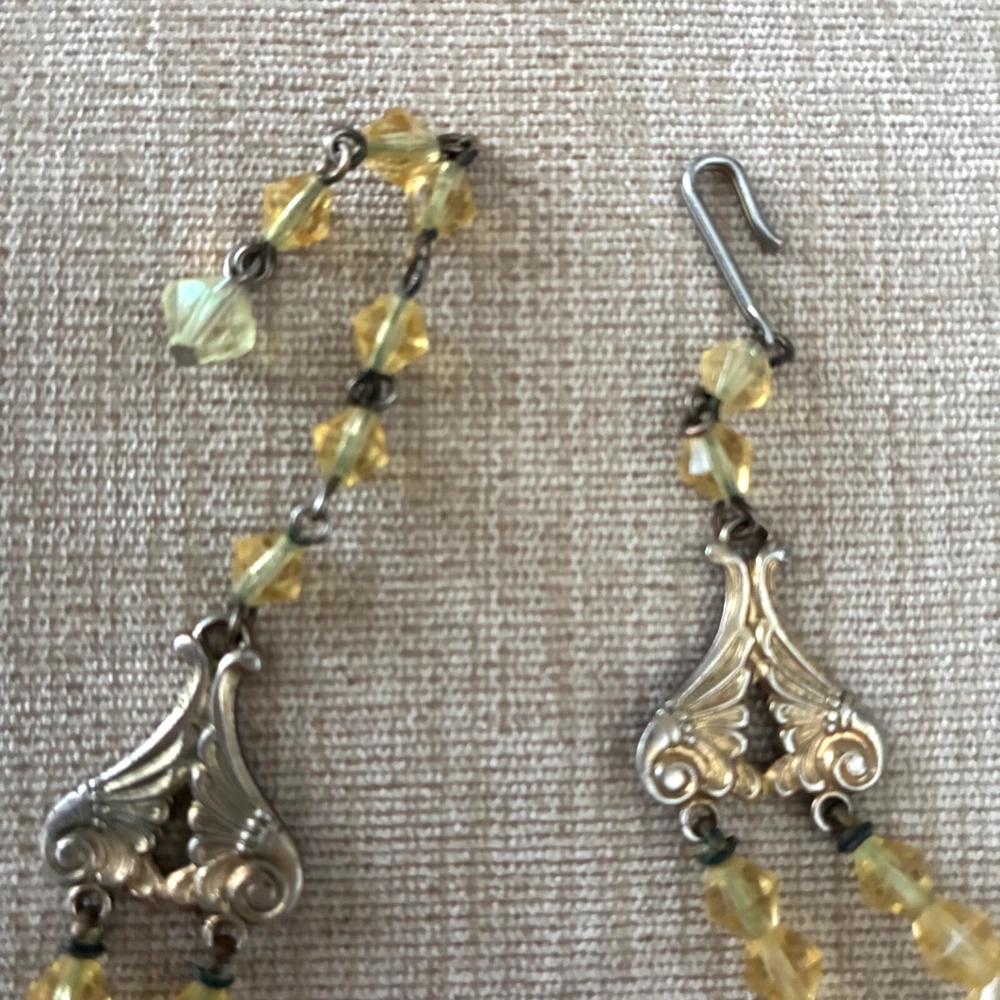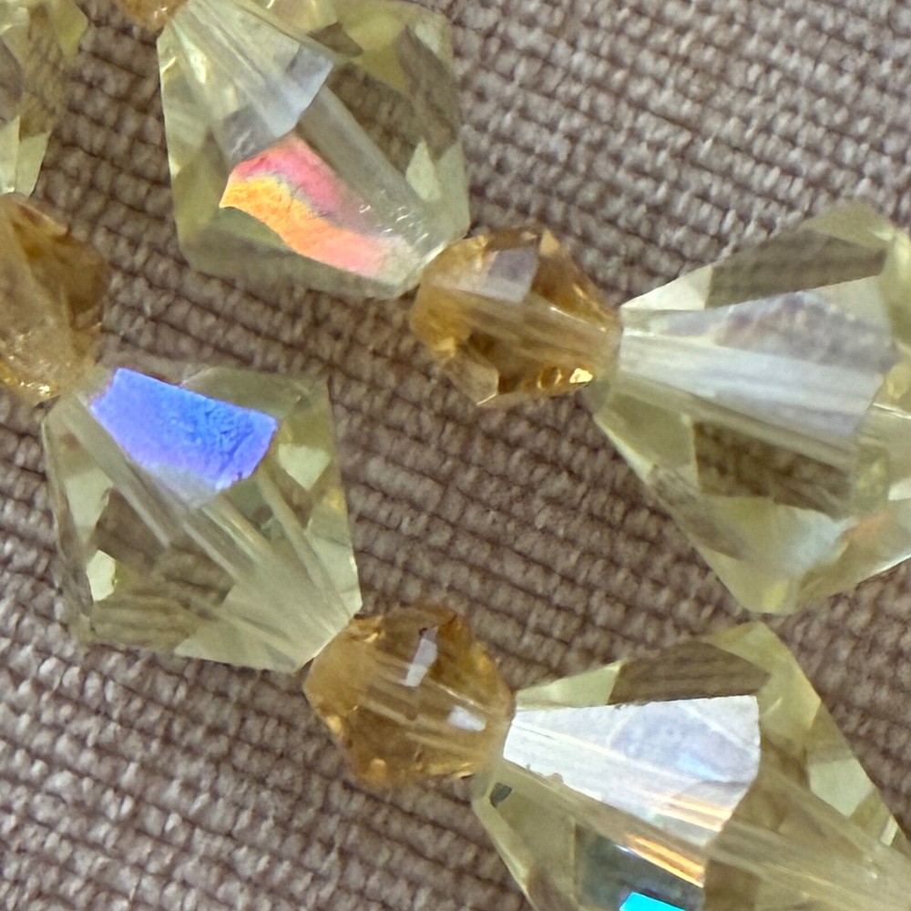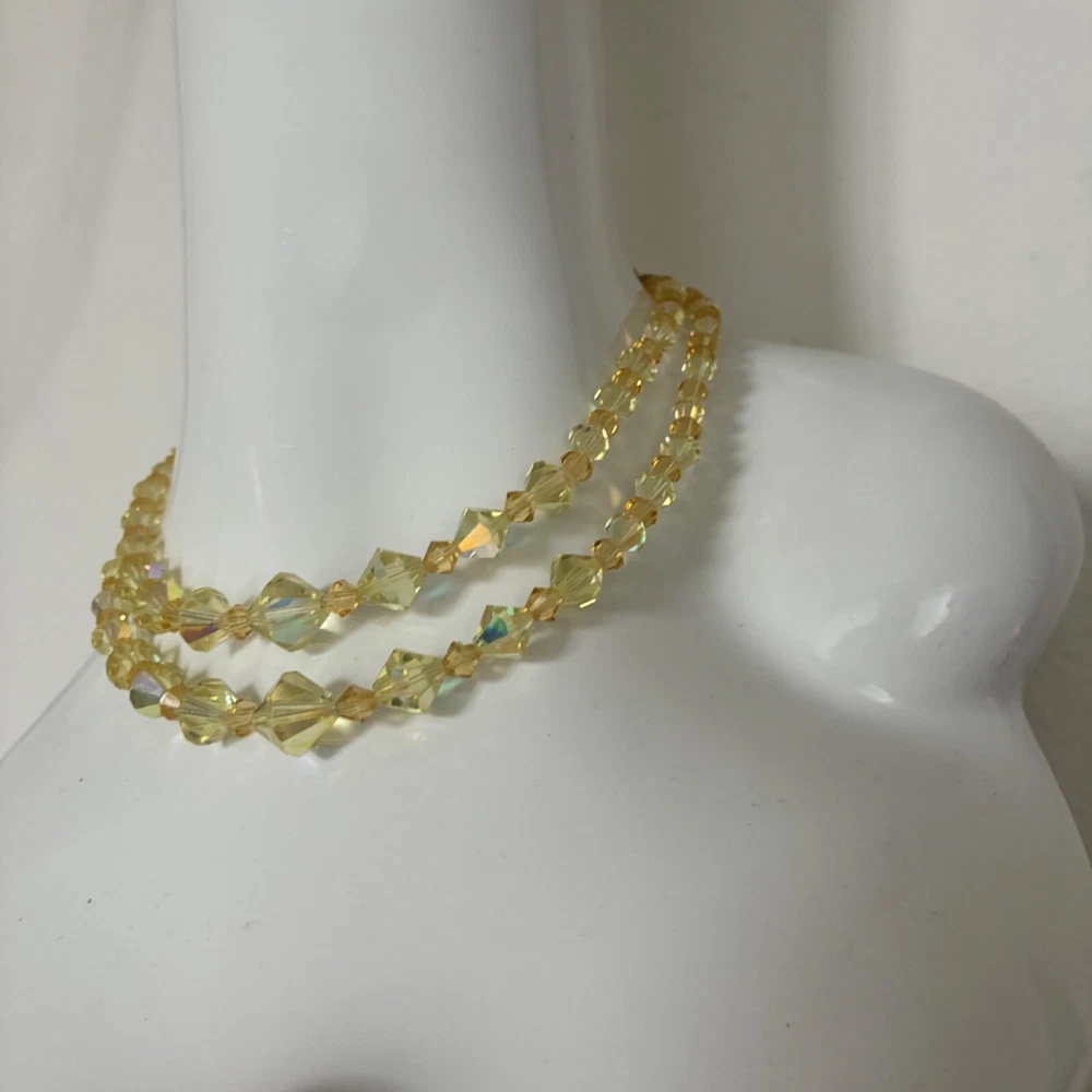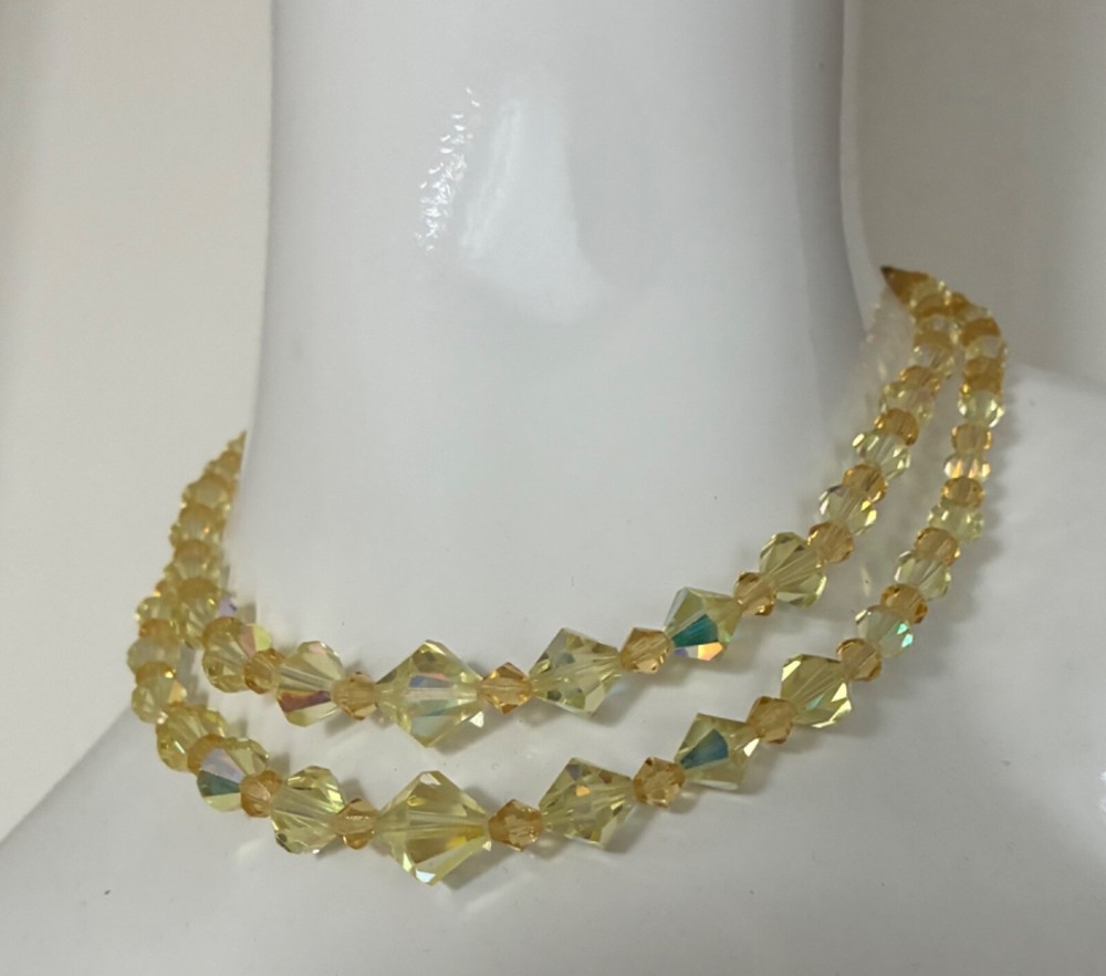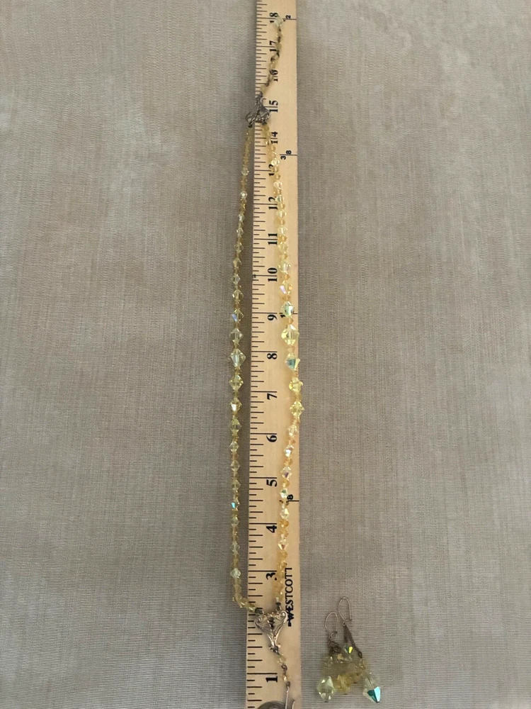 Vintage 1950s Yellow Aurora Borealis (AB) Glass Crystal Necklace & Dangle Earrings Set Adjustable J-Hook Necklace Closure - 15"-18" 2" Earring Length w/ Kidney Shape Closures Pre-owed Condition: Very Pretty Appearance - See pics to confirm ( also includes metal discoloration).
