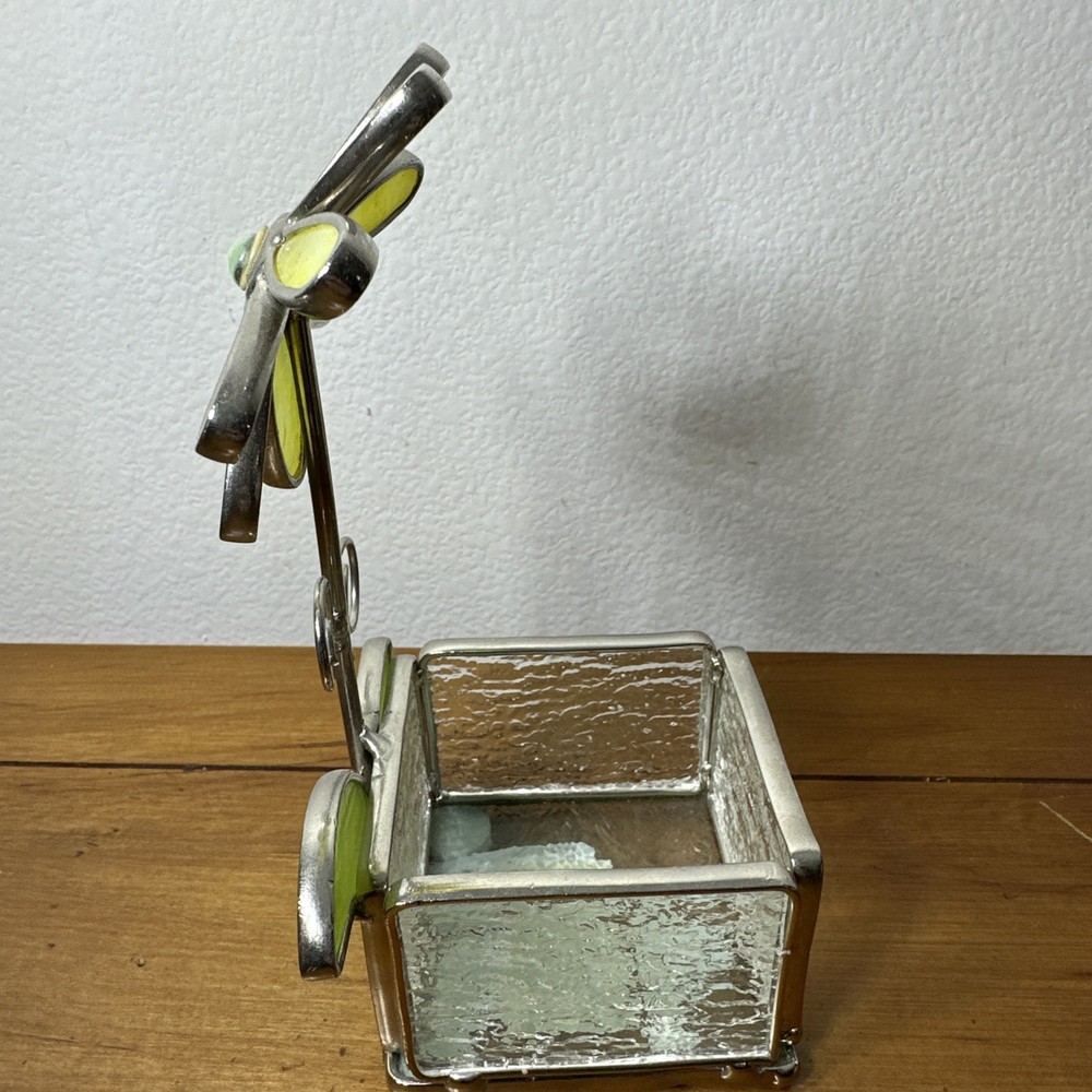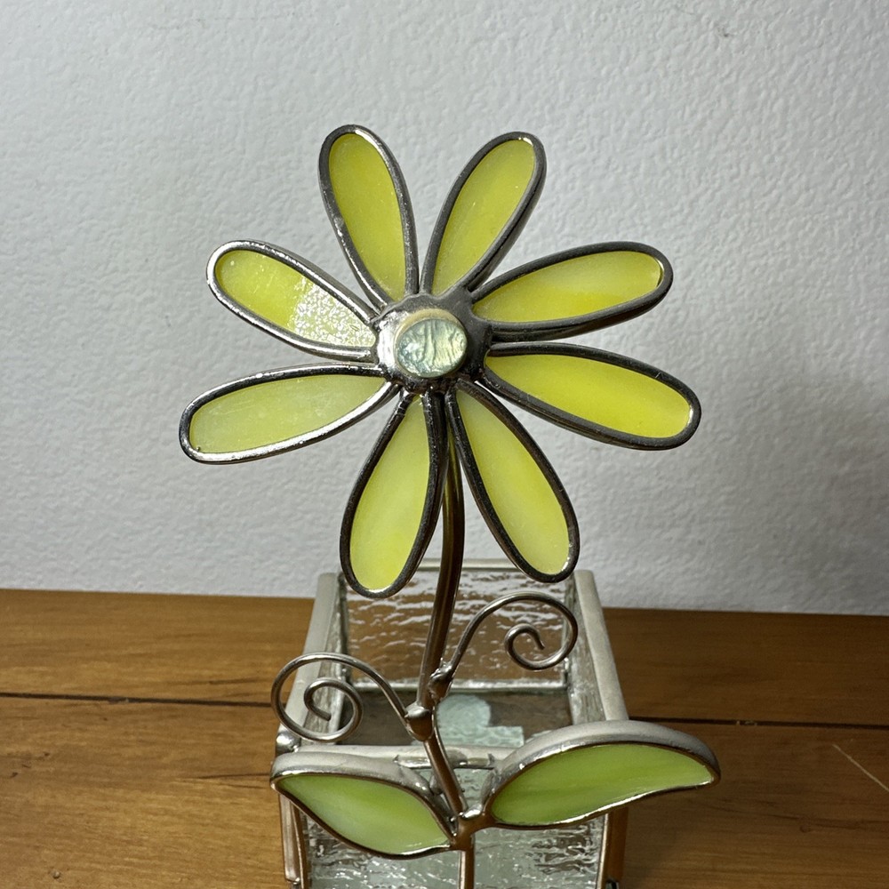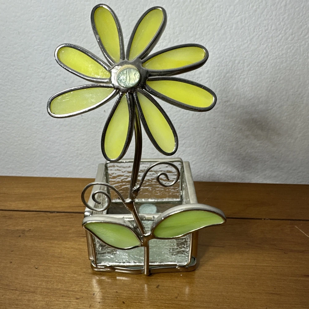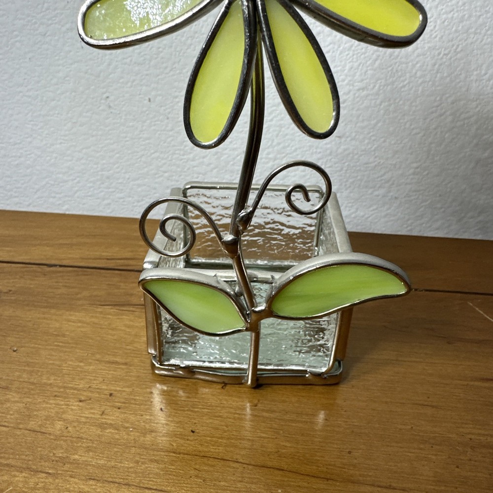 This vintage stained glass yellow flower figure trinket holder is a decorative candle holder made of glass, standing at 7 inches tall. Its retro style and flower shape make it a charming addition to various rooms in your home, such as the bedroom, living room, or bathroom. With a single unit quantity, this piece adds a touch of nature-themed elegance to your home decor.