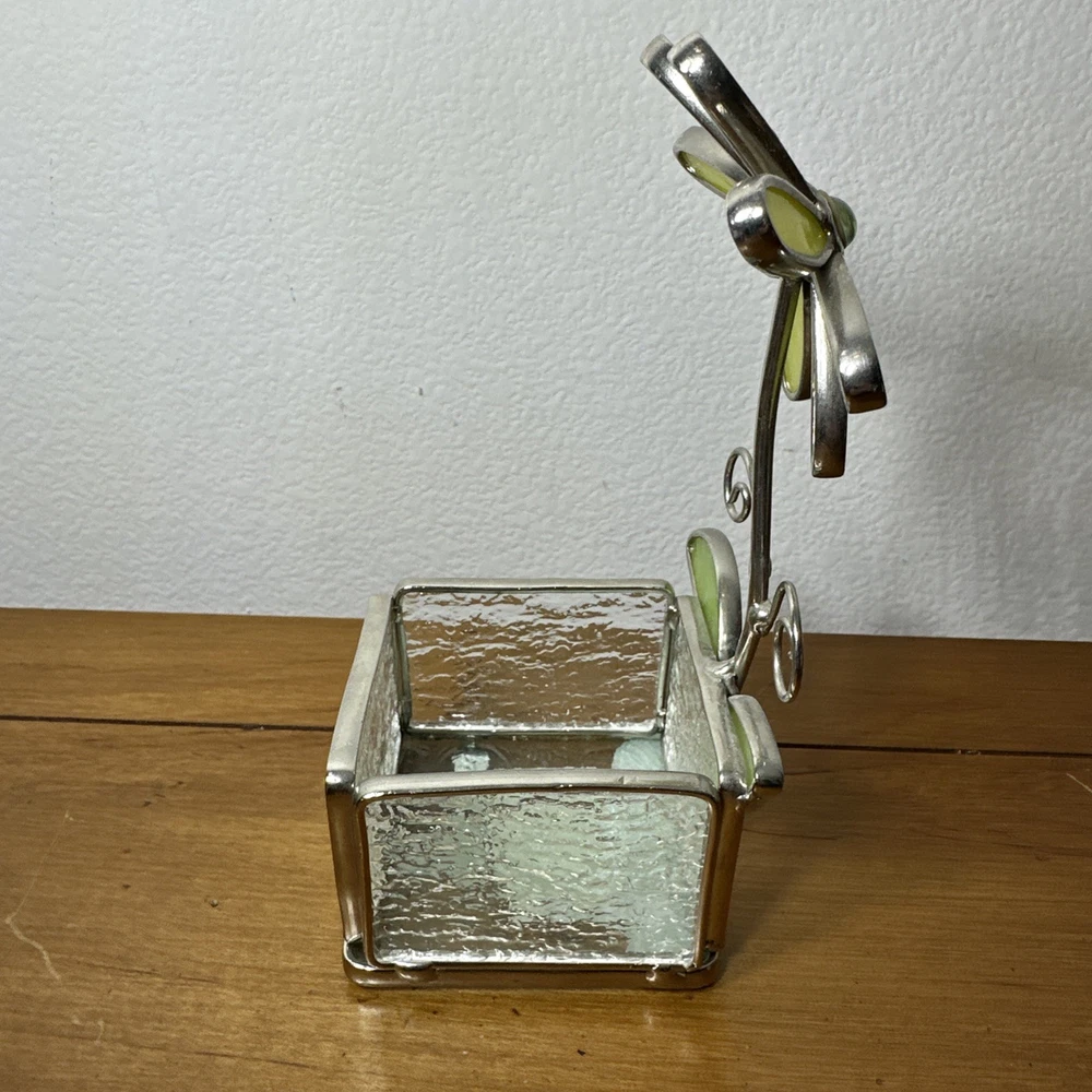 $ 27.98Lot Of 2 Candle Holder Marbled Glass Silver Base Tealight Included 5 1/4"H