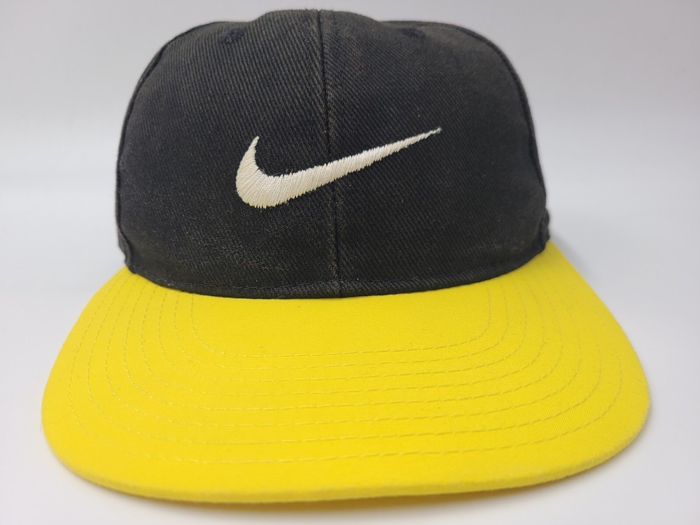 Vintage Youth Nike Snapback Hat Cap Swoosh Baseball Kids Boys Girls Black Yellow