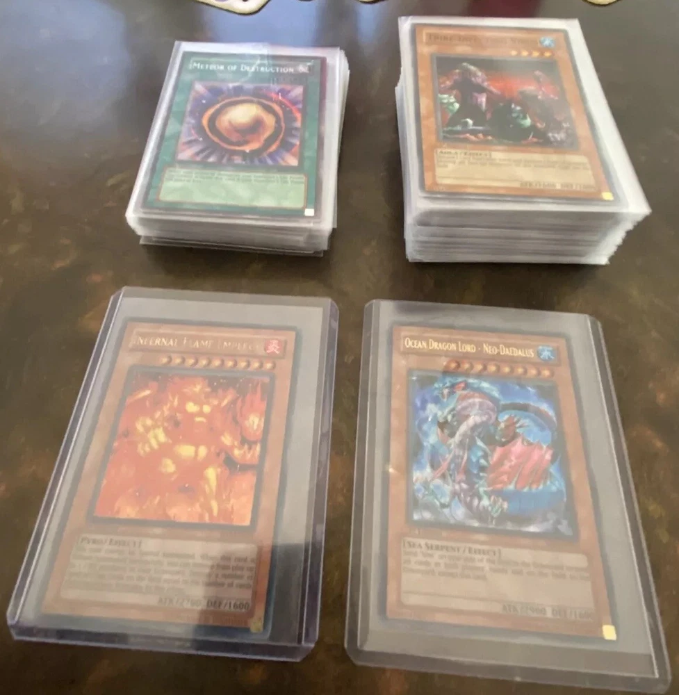 Lot of vintage Yu-Gi-Oh! Cards 107 total cards Includes 2 1st edition ultra rare cards Ocean Dragon Lord - Neo Daedalus Infernal Flame Emperor 72 1st edition cards 33 common cards Cards are in very good to near mint condition with the exception of only a few well played commons. I thought about not including them in the listing but I didn’t want to just throw them away.. Thanks for looking