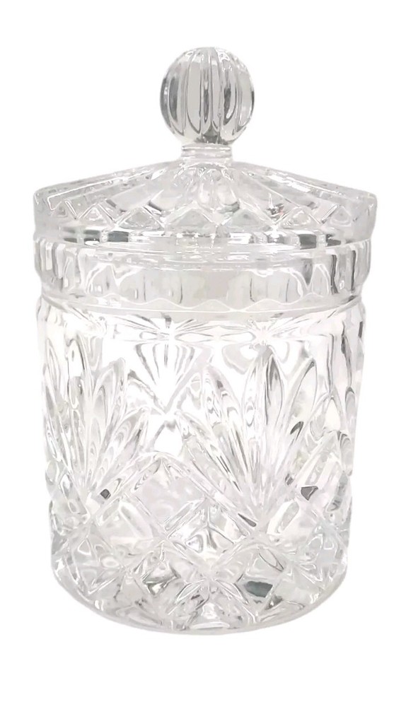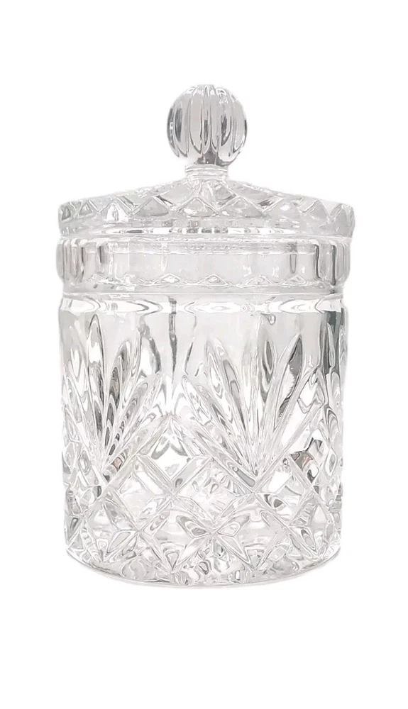 Vintage Zajecar Crystal Candy Dish is an Art Deco style piece originating from Yugoslavia in 1970s. Handmade with 24% Leaded Crystal, it features a Brahms pattern & lid Measuring approximately 5¾ in height, it is an elegant storage jar with a beautiful cut style finish, perfect for adding a touch of sophistication to any space. It's in excellent condition showing no damage such as chips or cracks. This would work lovely in a bathroom, on a vanity, or even in the kitchen for candy or dry goods. This piece will ship with immense care & fast! If you have any questions or would like more pictures of a certain angle I may have missed just reach out & I will reply promptly. Thank you!