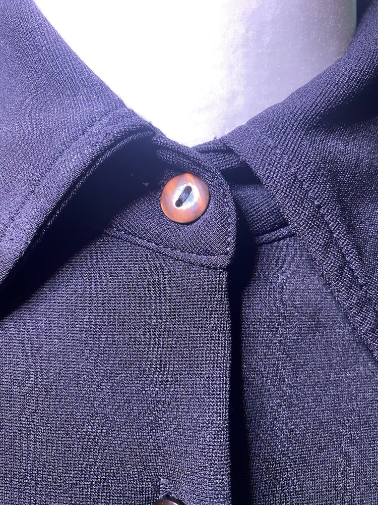 The Vintage Zamasport for Gucci Women’s Button Up Top is a stylish and classic piece of women's vintage clothing from the 1970s. Made in Italy, this black cotton top features a tailored look and button-up style, perfect for casual occasions. With its originality and high-quality material, this top exudes the luxury and fashion-forward aesthetic that Gucci is known for. Perfect for size M, this vintage top is a timeless addition to any wardrobe. Size 38 listed on label. Modern size would be a Medium. Accents your curves. I wore this jeans for a casual look and skirts for a casual office look. No rips, tears, pulls, or stains . Is excellent condition .