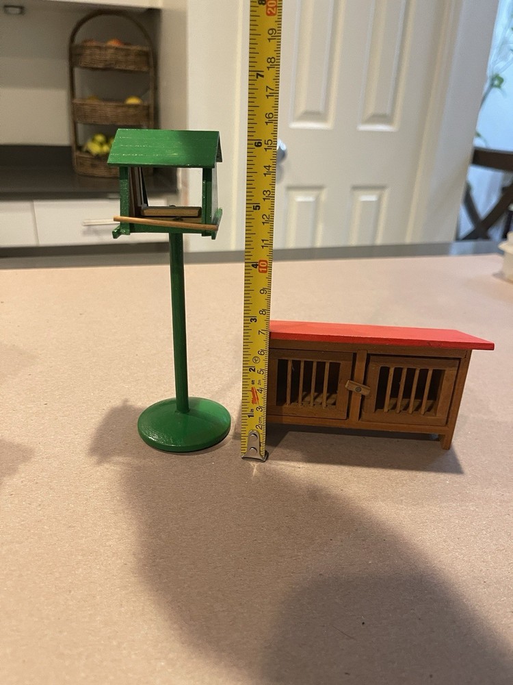 This vintage dollhouse miniature critter animal cage is a charming addition to any dollhouse collection. The bird feeder is made of wood and features a multicolor design, perfect for adding a whimsical touch to any room. This 1:12 scale feeder is an original piece that brings a touch of nostalgia to the dollhouse setting. Perfect for bird lovers or collectors of vintage dollhouse miniatures.