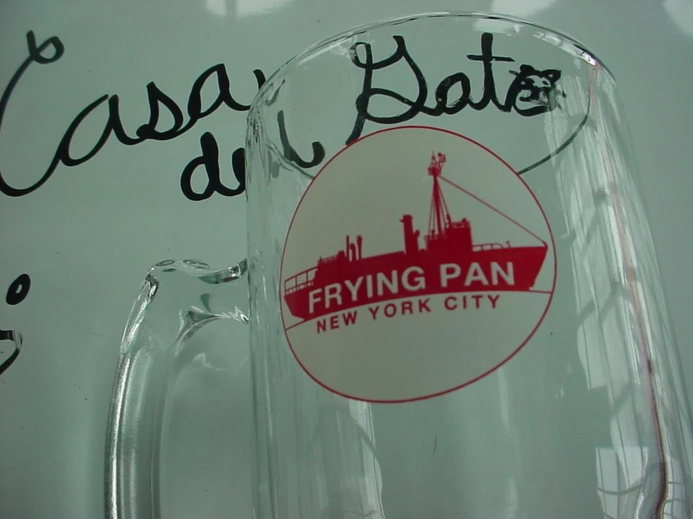 Glass beer stein marked with the logo of the Frying Pan Pier 66 New York City. Piece measures just under 8 inches high. Piece is in excellent, near new condition. There are a few very slight nicks and scratches to the color but overall like new. Take a good look at the photos as piece is being sold as-is. Pictures sell! Auctiva offers Free Image Hosting and Editing. The complete eBay Selling Solution. Track Page Views With Auctiva's Counter
