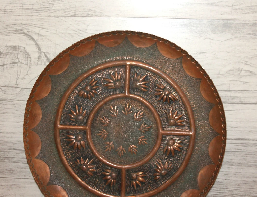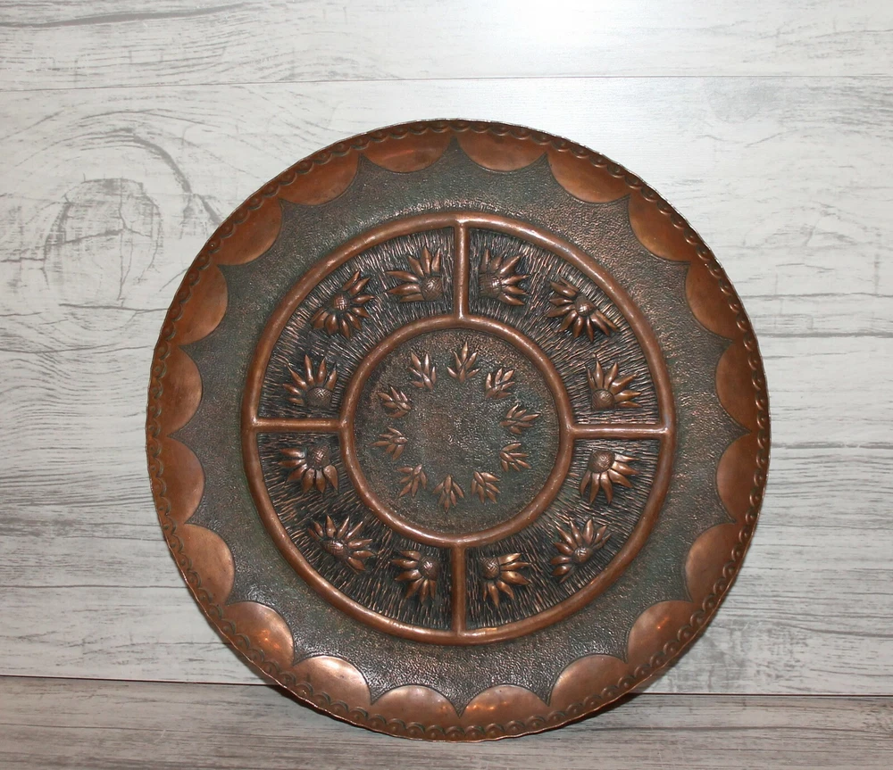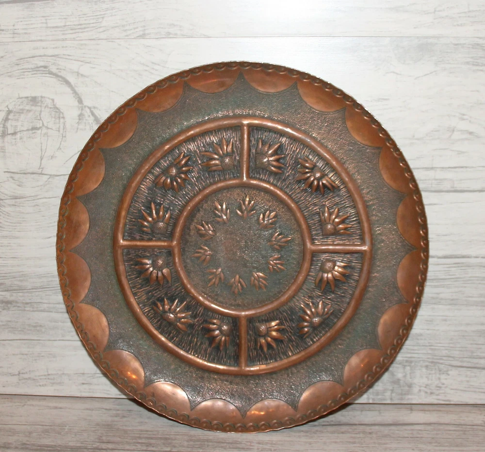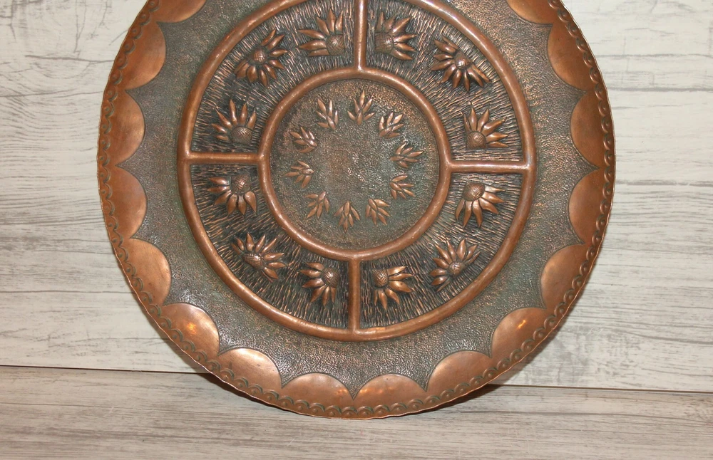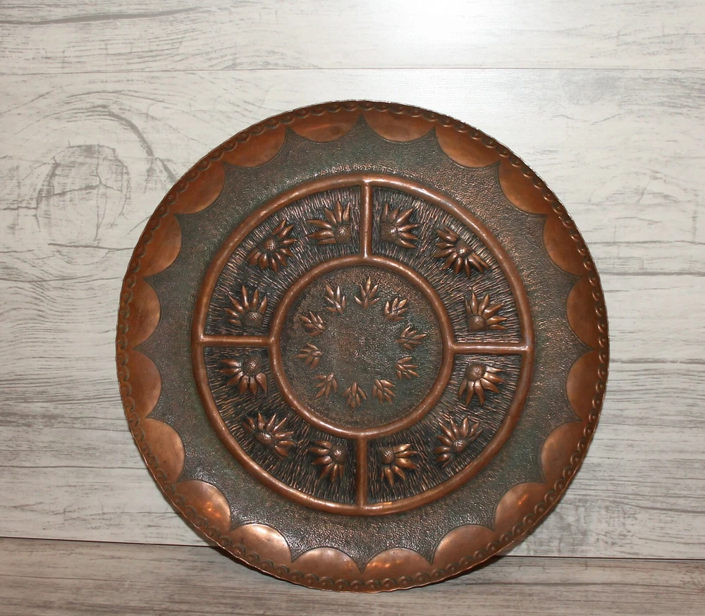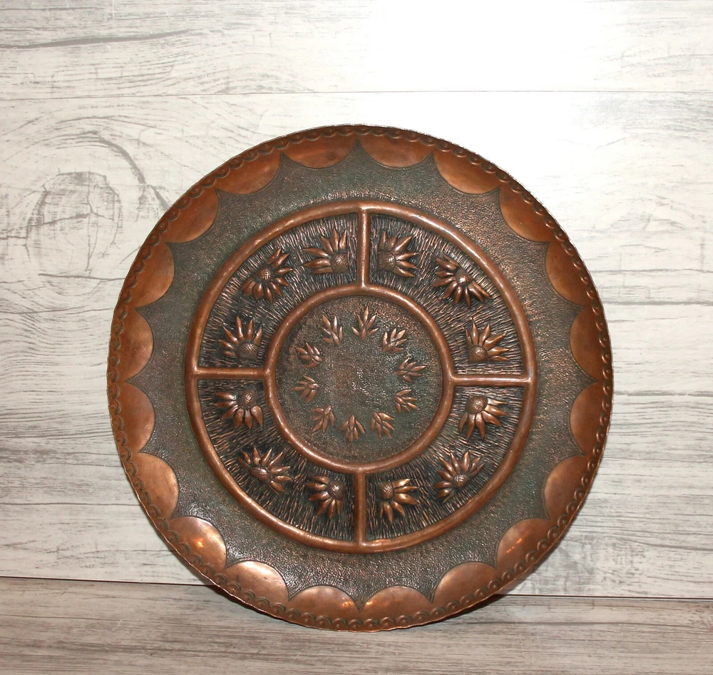 Vintage hand made copper wall hanging floral plate Thank you for taking the time to view this auction, please take a moment to view my other items. Lovely Vintage hand made copper wall hanging floral plate from 1960's - 1980's. Size - about 11 inches diameter, 25 centimeters diameter. Condition - have scratches. We have represented this item precisely and honestly to the best of our ability.We are not experts so please allow only the photos, not the text, to be your guide.If you have a question regarding the item, please contact us prior to placing your bid.I encourage you to look at my other auctions for a wide variety of items.Best of luck in your bidding and thanks for your time looking at my auction. THANK YOU FOR LOOKING AND HAPPY BIDDING! Item as described: Every item is clearly described in auction description, and accompanied with numerous detailed photos. All items are genuine, authentic and all original. Communication: We will answer to all your questions immediately, later within 24 hours, depending on time zone differences. Shipping time: We ship with registered air-mail delivery. Delivery takes about 10-15 business day, after your payment clears paypal. WE SHIP ON NEXT BUSINESS DAY AFTER PAYMENT RECEIVED . Tracking information will be available on first/second business day after date of shipment. You will be informed via EBay system once item ships. Shipping and handling charges: The shipping charges are based on Post international tariff, and calculated with the item's safety and securely packaging needs. Multiple purchases will be calculated in one combined shipment to save our customers shipping taxes. THERE ARE NO HIDDEN SHIPPING CHARGES IMPOSED! Cases: If you are not satisfied with your purchase, please inform us and we will take immediate actions to resolve your request. Normally, refunds are provided. We will refund your money in full, and you must return the item in same condition as you receive it. inkfrog terapeak