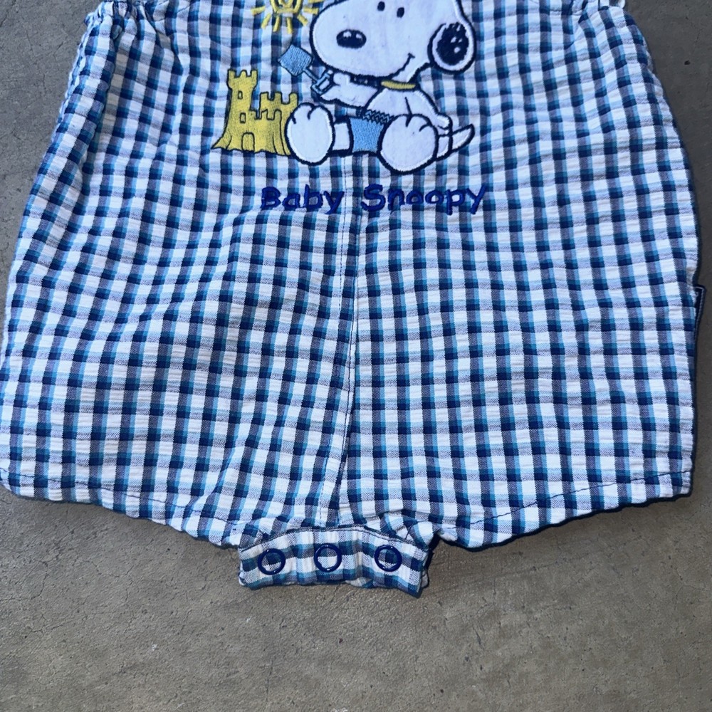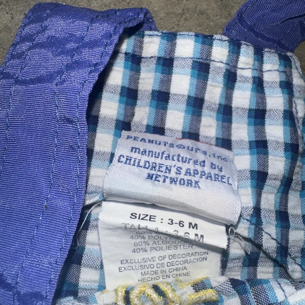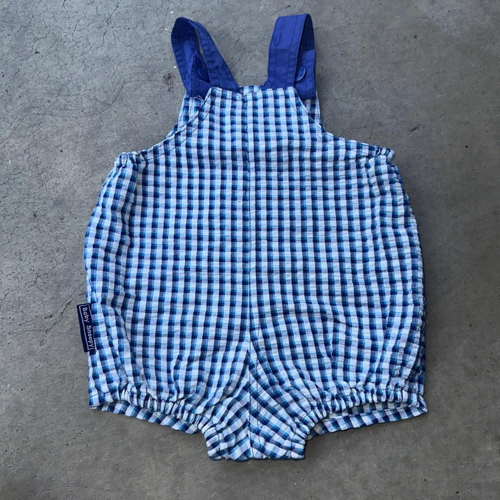 These vintage plaid baby Snoopy Woodstock explorer overalls are perfect for your little one, featuring a sleeveless design and snap closure for easy dressing. Made of 100% cotton, these overalls are machine washable and adorned with embroidered Snoopy accents, adding a playful touch to your child's outfit. The blue plaid pattern and overall style make these overalls versatile for casual occasions during the summer, fall, and spring seasons. With the iconic Peanuts character family and unisex appeal, these overalls are sure to be a hit with both parents and babies alike.