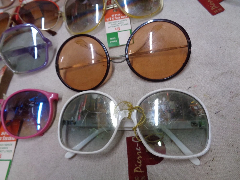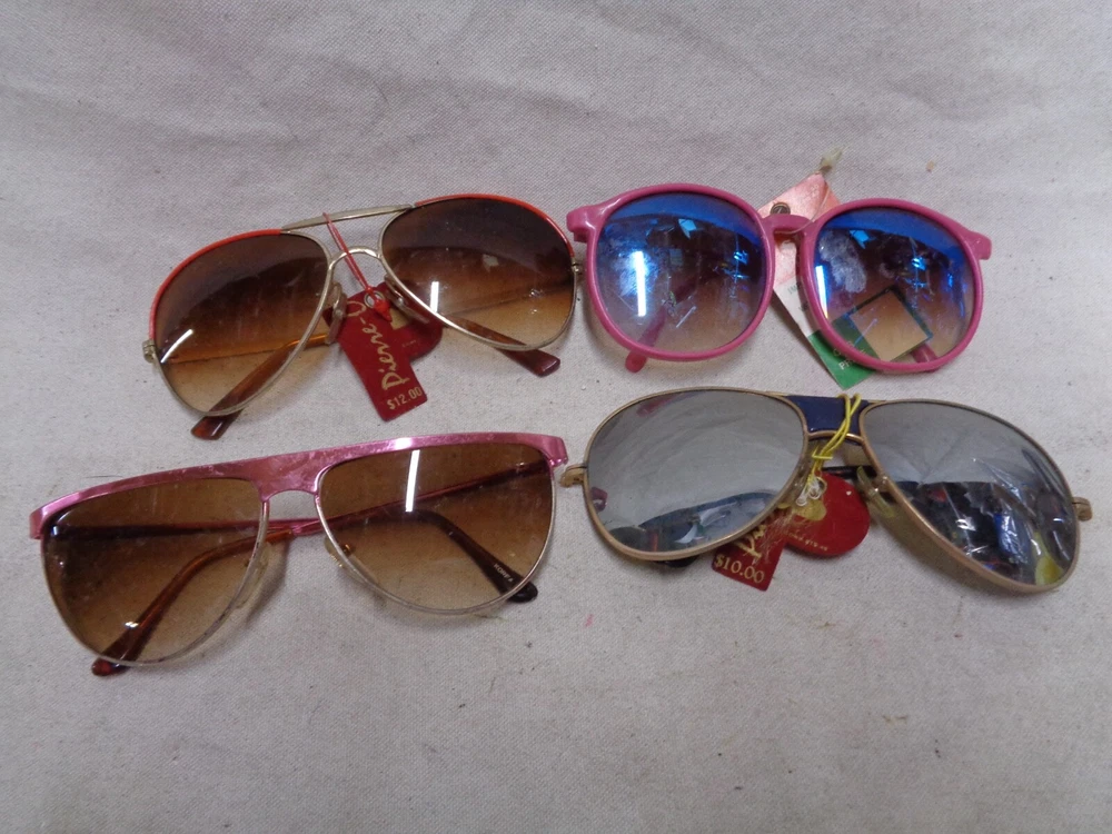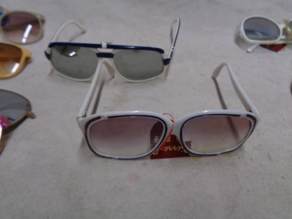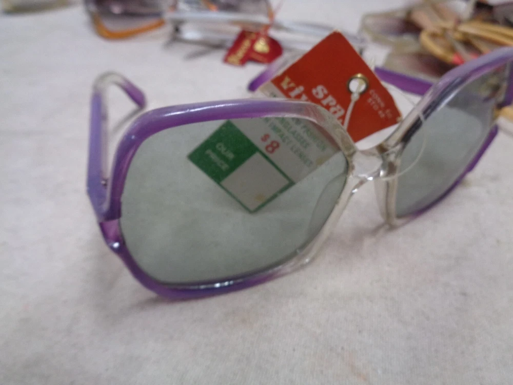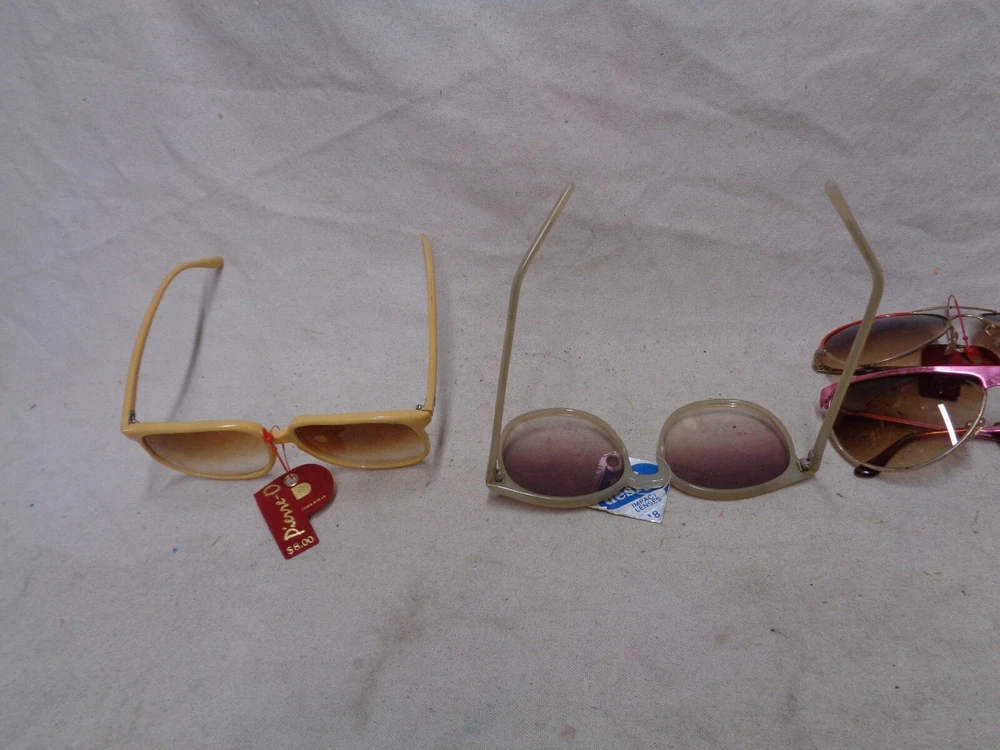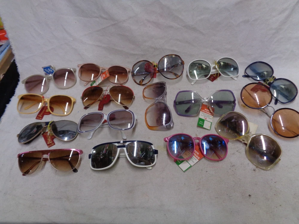 16 diff. pair . OLD STOCK w/ TAGS . Some say "France" , "ITALY" but most say "TAIWAN". Some of them are NOT PERFECT ; the arms may be bent in the wrong direction from age and sitting in a hot place like an attic. The lenses may have scuffs / mild scratches. Overall , they are good . Only a few suffer from the flaws mentioned. I STILL have to sell these "AS IS" . Shipping is $9.50
