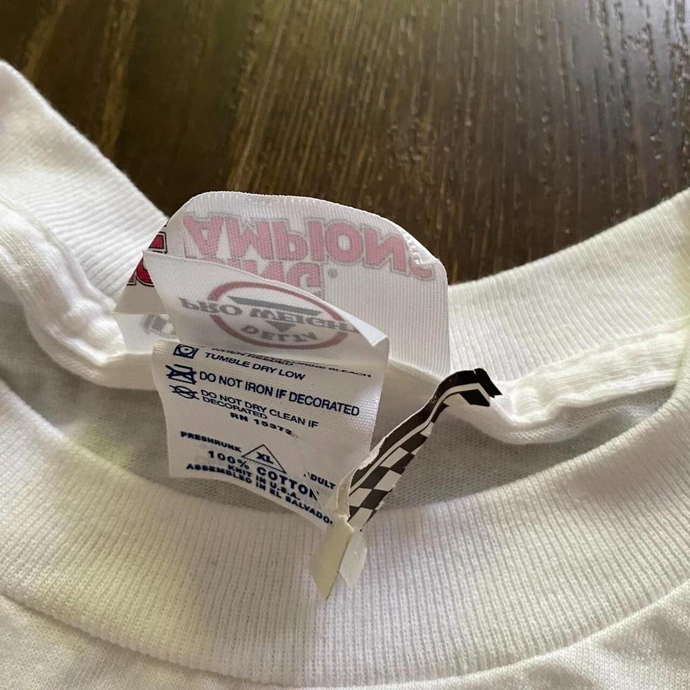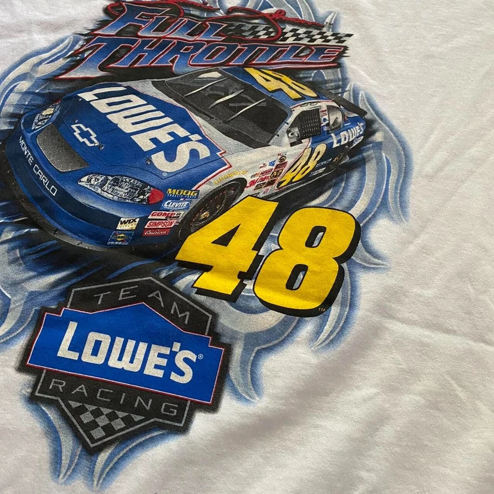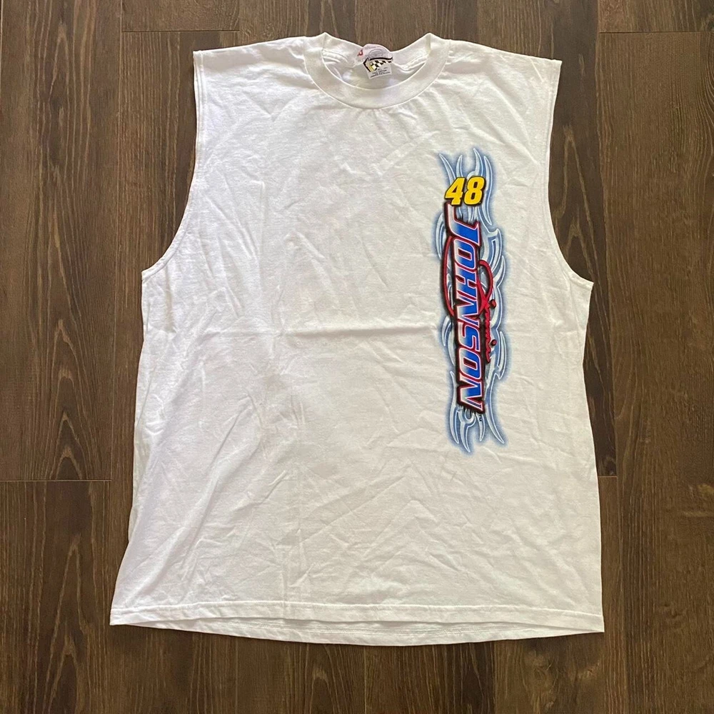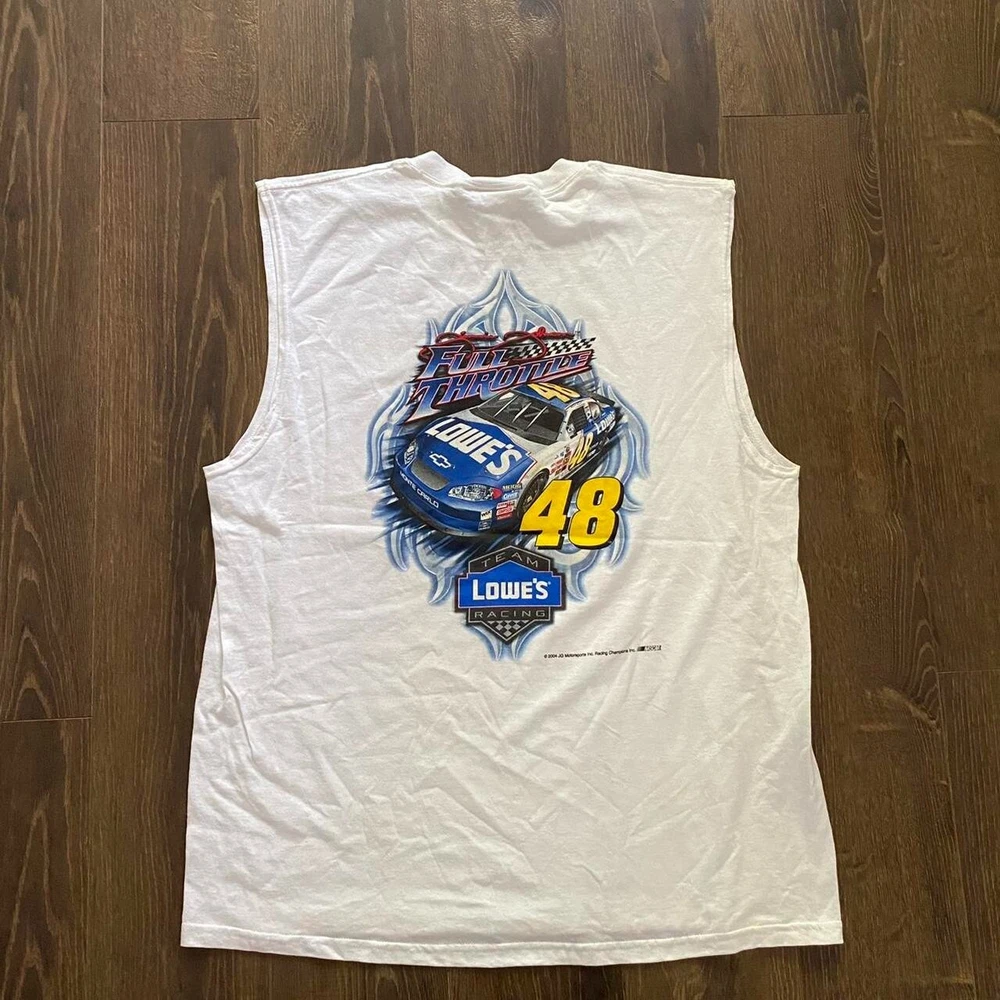 Capture the essence of classic NASCAR nostalgia with this Vintage Team Lowes Muscle Tee by Chase Authentics. A testament to timeless style, this white, XL-sized tee features a bold graphic print that celebrates the iconic partnership between Lowes and NASCAR. Made from breathable cotton, it's designed to provide comfort across all seasons, making it a versatile addition to any wardrobe. The shirt boasts a sleeveless cut with a traditional crew neck, ensuring a relaxed fit for every occasion. Its double-sided design adds an extra touch of retro flair, while the regular fit ensures it pairs effortlessly with your favorite sports or casual attire. Embrace the spirit of the 90s and the thrills of the racetrack with this must-have vintage tee.