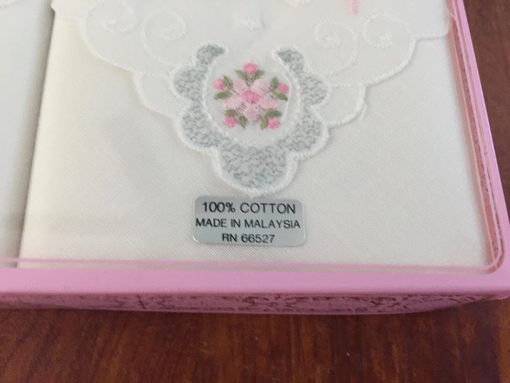 Vintage women’s handkerchiefs embroidered 100% cotton 12x12" New Vintage unused item in the original box, set of 2 handkerchiefs.