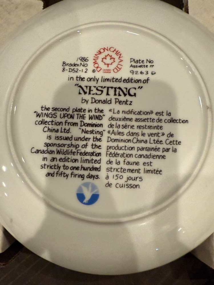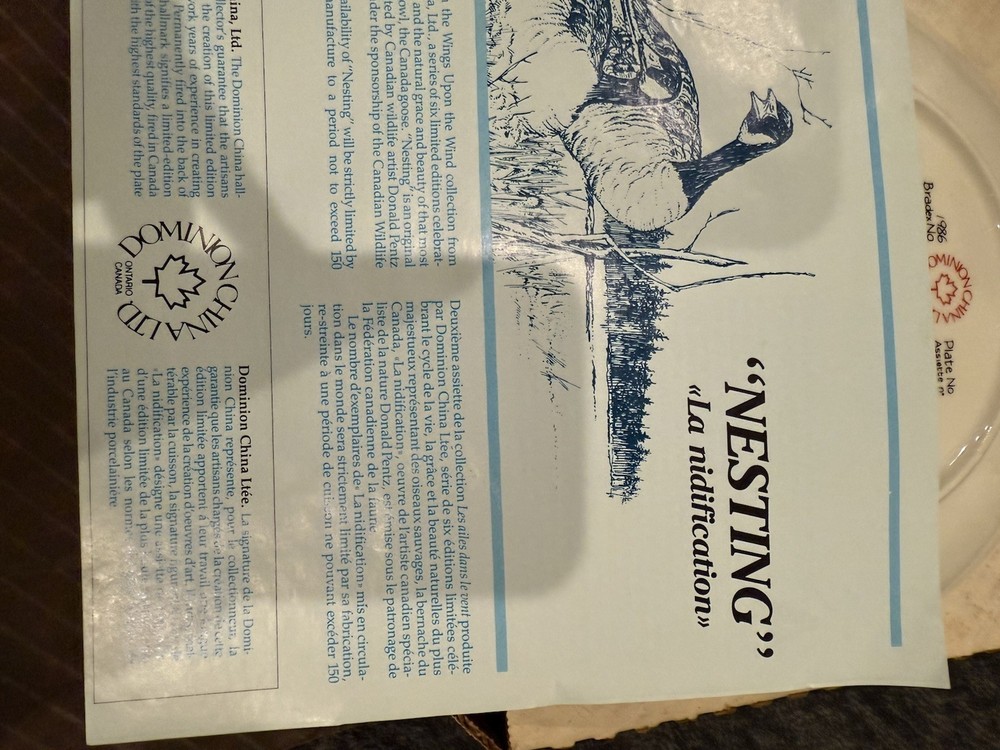 Theme:NestingCulture:CanadianTime Period Manufactured:1980-1989Features:Date-LinedOccasion:All OccasionsBrand:Dominion China Ltd.Product Line:Dominion China Ltd.Production Style:Art PotteryPattern:DucksMaterial:PorcelainEra:Late 20th Century (1970-1999)Vintage:YesShape:RoundOrigin:OntarioColor:MulticolorAntique:NoProduction Technique:PotteryStyle:DecorativeType:Collector PlateCountry of Origin:CanadaHandmade:NoItem Diameter:8.5 in