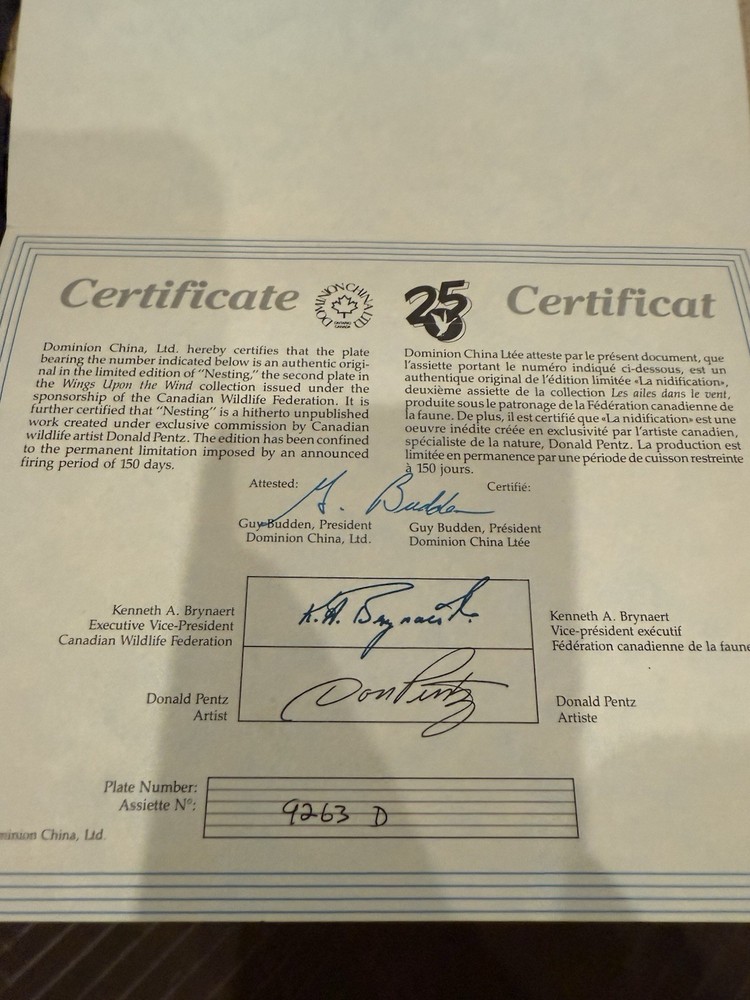 HomeVintage-“NESTING”-By Donald Pentz-COLLECTOR PLATE-1986 Limited Edition-With COA.