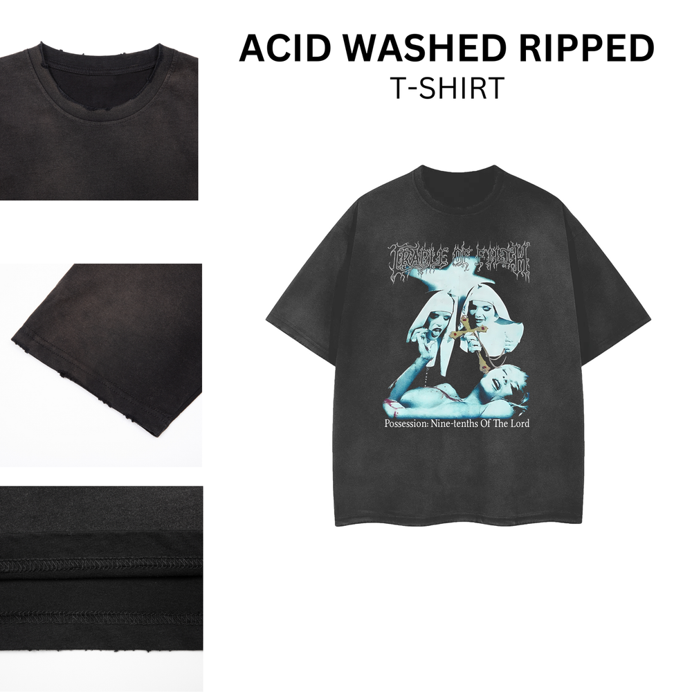 Vintage-Style Acid Washed Ripped Rock Band T-Shirt - Unisex Distressed Tee 103003