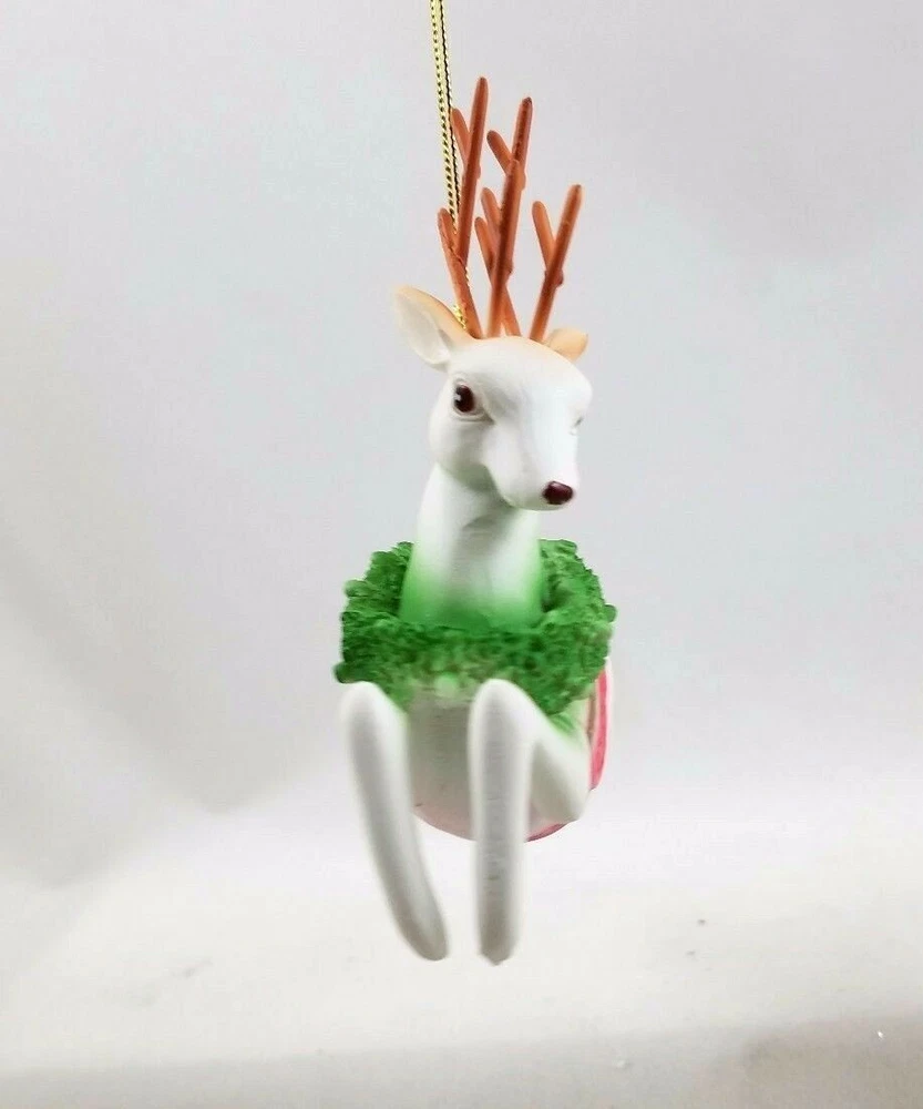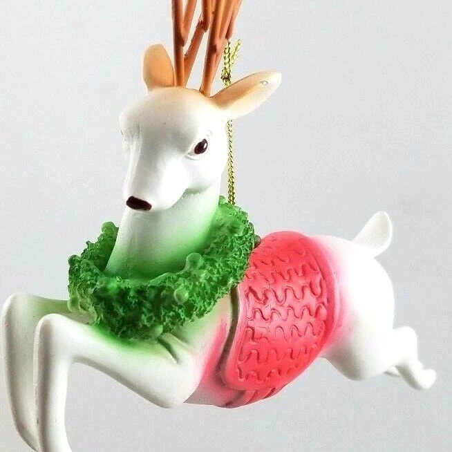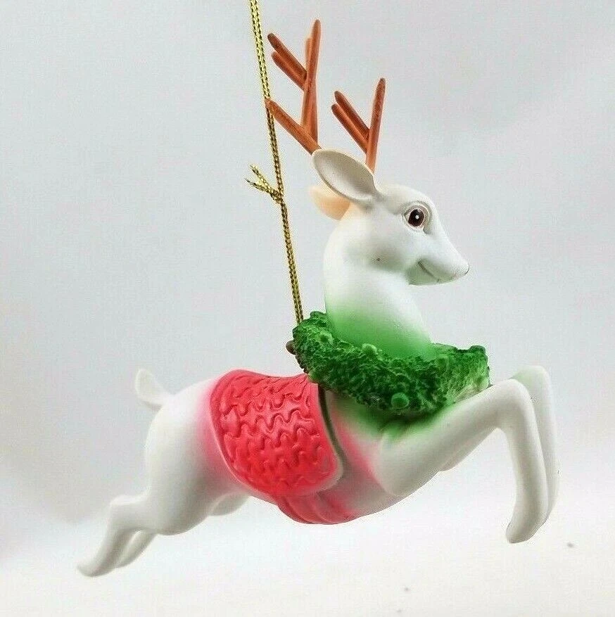 Reindeer Ornament Terrific vintage-style reproduction of a classic Reindeer ornament, made of resin and hand painted, this cute reindeer is 4" and will make for a nostalgic Christmas! NEW