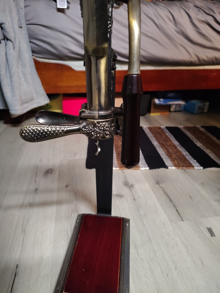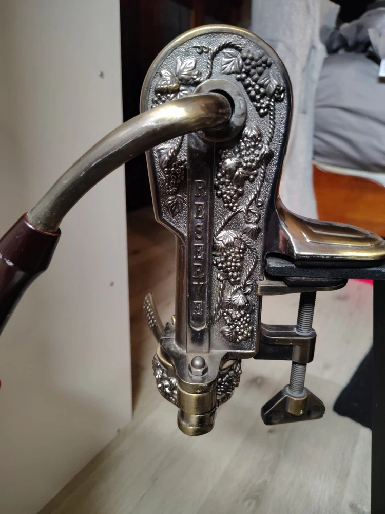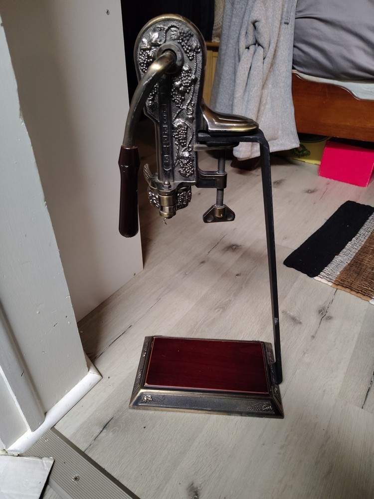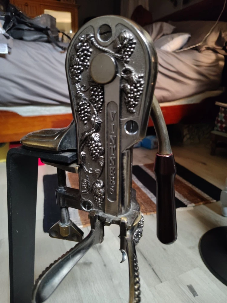 The Vintners Reserve Bartop Wine Bottle Opener is a stylish and functional addition to any home bar or kitchen. This antique brass corkscrew features a vintage design that adds a touch of elegance to your decor. The included table top stand makes it convenient to use and store, while the Vinters Reserve brand ensures quality and reliability. Whether you're opening a bottle of wine for a special occasion or just want a stylish corkscrew for everyday use, this product is sure to meet your needs. Very little signs of cosmetic wear fully operational and functions as intended excellent condition