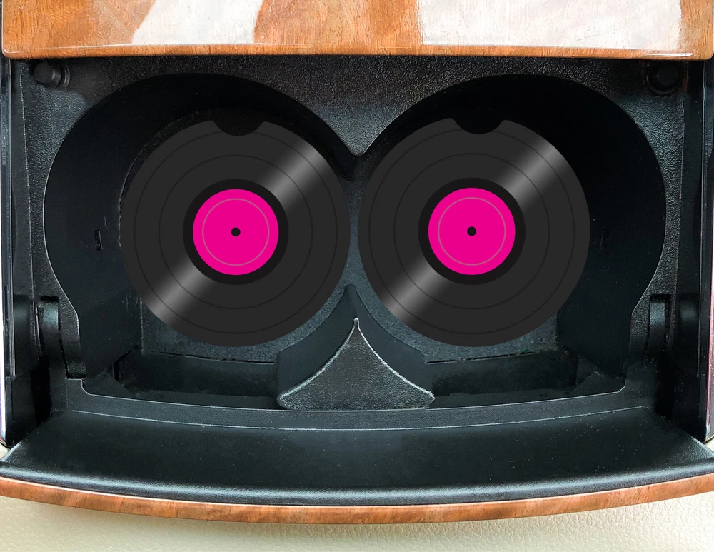 Neoprene slip proof waterproof coasters for your car, SUV, tractor, table or favorite recliner. These are 2.6" in diameter with a divot to pick up easily. Set of 2 car coasters to protect your cup holders. You choice of color Red Blue Yellow Purple Pink Green Orange All items are printed in-house. We have larger 3.5" round coasters available for your bar, camper, coffee table etc.. I can use this pattern to make matching gift bundles - license plates, mugs, bookmarks or signs. If you're looking for something specific please ask