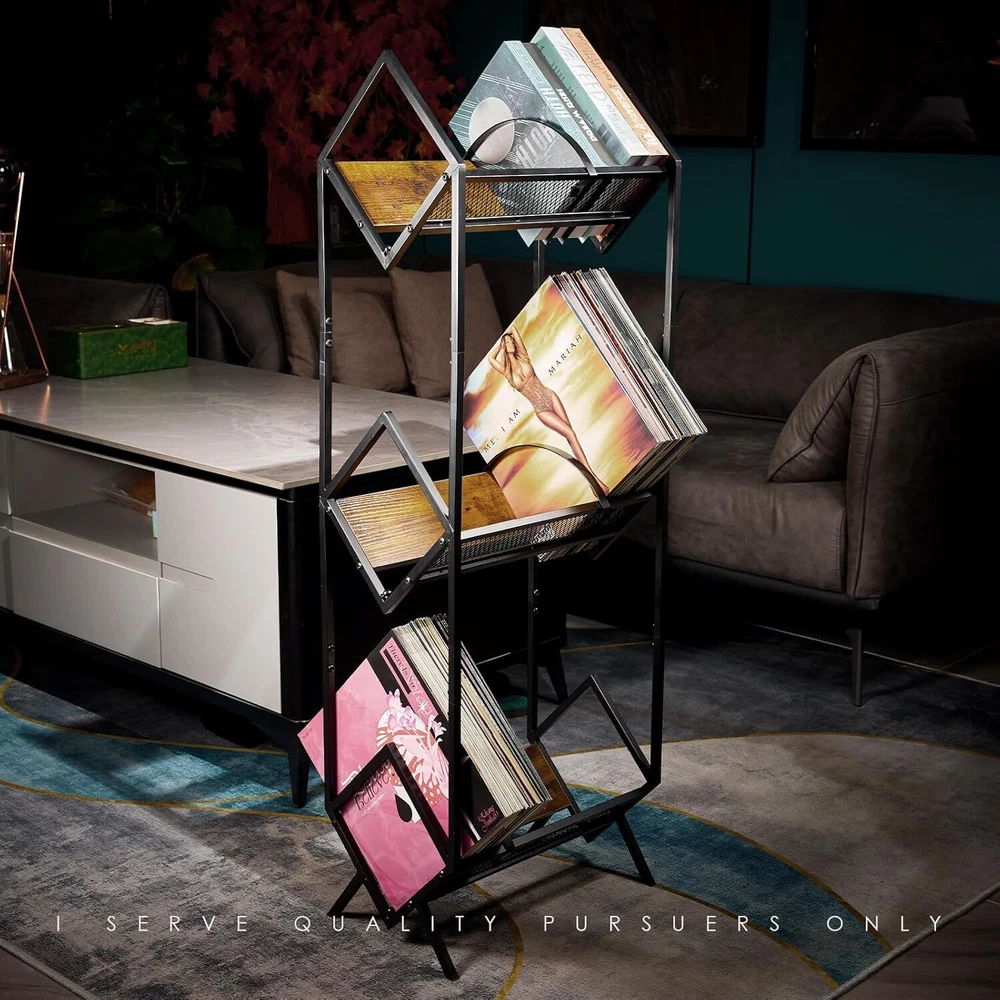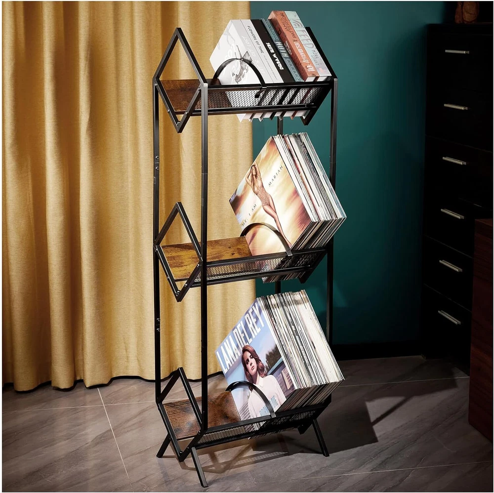 Vinyl Record Holder, LP Storage Shelf, 3-Tier 3 tier retro color Product Details Material: Stainless Steel Color: 3 tier retro color Special Feature: Iron and wood combination Exterior Product Dimensions: 17"D x 11"W x 47"H Shelf Type: Tiered Shelf Number of Shelves: 3 Room Type: Living Room Finish Type: Powder Coated Included Components: Vinyl Record Holder X1 Item Weight: 10 Pounds Brand: LiebeRen Style: Retro Manufacturer: LiebeRen Part Number: AYJ0180A Item Weight: 10 pounds Item model number: AYJ0180A Finish: Powder Coated Special Features: Iron and wood combination Exterior Batteries Included?: No Batteries Required?: No Material: Stainless Steel Color: 3 tier retro color Special Feature: Iron and wood combination Exterior Product Dimensions: 17"D x 11"W x 47"H Shelf Type: Tiered Shelf 【Vinyl Record Holder Material】vinyl record storage rack is made of SUS304L industrial steel and retro imitation wood, the surface of the Vinyl Record Holder is polished with powder coating, Vinyl Record Holder the exquisite linear details of the vinyl record rack highlight your unique taste. 【Vinyl Record Holder Structure】3-Tier vinyl holder structure makes full use of the vertical space, Vinyl Record Holder each layer stores no less than 80 vinyl records, V-shaped design of the vinyl record holder not only helps you access vinyl records more easily, but also provides better protection your record. 【Record Holder Rack Dimensions】vinyl record holder measures 17L x11W x 47H (inches),Please note that this product is suitable for vinyl records 12 inches and under. record holder upright design complements any vinyl records decoration, vinyl record organizer is a perfect gift choice for family and friends. 【Record Holder Assembly】vinyl record storage shelf easy to install,comes with installation hardware, follow the simple step-by-step instructions, you will have a perfect vinyl record rack within 10-15 minutes. 【Vinyl Record Holder After-sales 】The record stand has been strictly tested for quality before leaving the factory, if there is any quality problem with the vinyl album storage holder, please send a simple email, and we will provide a full refund or replacement.