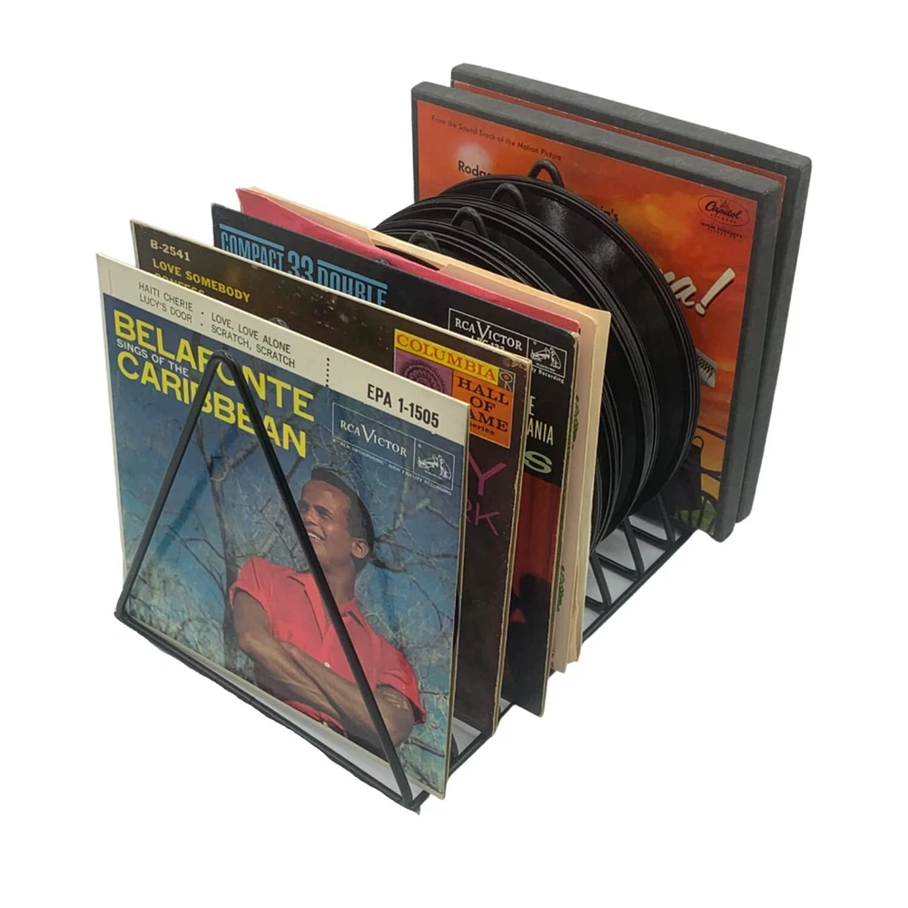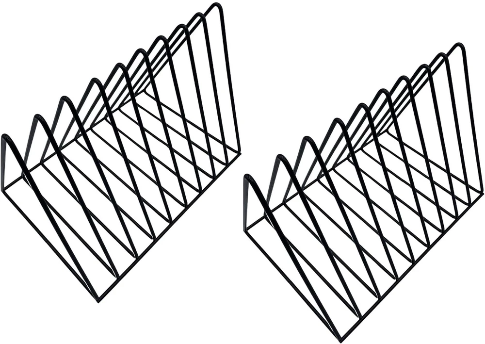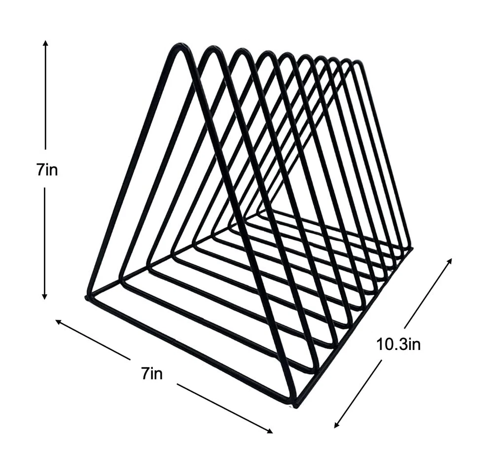 Functional, Simple and Stylish Record Storage and Display Solution When you purchase the Vinyl Record Holder you get an Elegant and Sturdy LP Stand that will enhance your Turntable area 2 Pack for added storage space Minimalist design adds class and functionality coated Wire Rack is safe and won’t scratch your Records Easily Flip to find your favorite album Stylish and Durable, will not crack or bend The best addition to Organize your Vintage Collection Fun to Use, Safe and Reliable! Solid construction will last a Lightweight will fit anywhere Easy to set up, no tools required. Have your favorite albums handy A must have when you want to tastefully display your Cherished Lp’s Versatile and Effective Space saving, Steady Table or floor Display Unique Industrial design will heighten your LP listening area Our Best Record Storage at a great price! No Questions Asked Total Satisfaction ! If you are not 100% satisfied for any reason, we will replace your Record Storage Holder for free or the full purchase price, No hassles and No questions asked. *provided exclusively by authorized sellers So order yours NOW! In fact consider getting , it makes a Perfect Gift for your Record Collector Friend! Space saving vinyl record holder, 9 slots iron shelf holds up to 33 records right next to your vinyl player. Always keep your Vinyl standing in an upright position as lying them on top of each other produces pressure that might warp your vinyl making them unplayable Your new album holder - album stand requires no assembly, easy to set up on table top or Floor, Cute minimalist design functional Record Holder for albums and file holder for desk. Measures 10.3” x 7” x 7” easily holds 33+ Records. Outstanding desktop decoration for your home or office. 2pack for extra storage space Easy access to your vintage collection, cool open design record organizer makes it simple to find your play of choice. Useful when you need to add functionality to a cabinet, or your office desk as a file organizer stand, notebook holder organizer, wire magazine holder or desk folder organizer Convenient and durable coated steel record holder stand, vertical triangle file holder, folder organizer for desk, book and magazine sorter and divider. Safe for any environment, makes a great gift for any serious audiophile, DJ or Vinyl Music Enthusiast Versatile triangle storage vinyl stand can also be used as magazine stand, wire file organizer, book organizer for desk, file rack, folder desk organizer, notebook and newspaper holder, desk file holder, and of course your go to record rack for albums. 2 Pack for even more records!