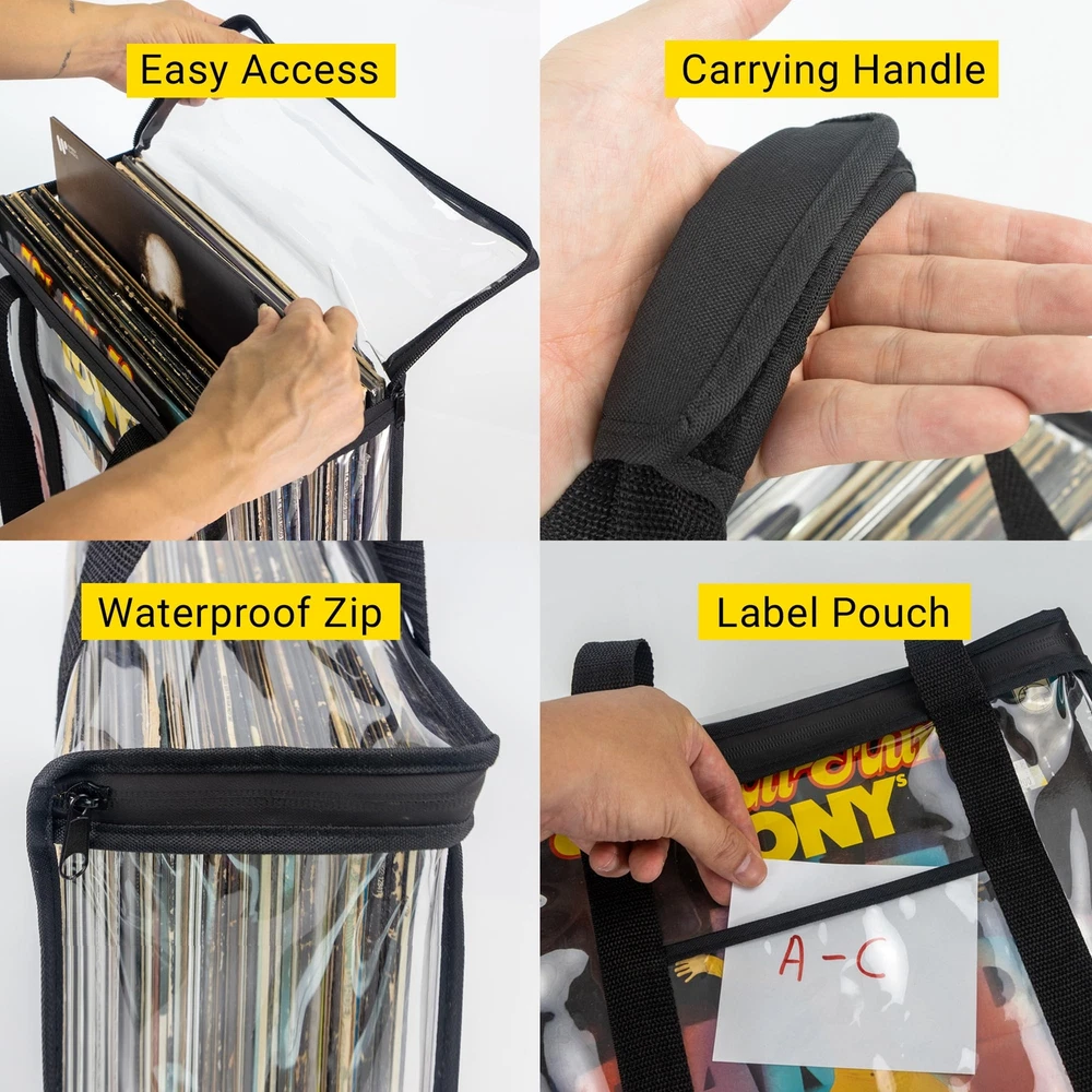 HIGH QUALITY CARRIER - Thick nylon belts run along the edges of the record bag with strong a nylon fabric base to give it extra structural strength. Not the thin PVC vinyl storage bags you see out there. Store and carry your records safely! HOLDS UP TO 168 RECORDS - With each vinyl records bag able to hold up to 42 records, this pack of 4 record bags for vinyl can store up to 252 records in your shelves, under the bed for easy out-of-the-way music collection and organization. DUST-FREE, SPLASHPROOF DESIGN - A waterproof zipper to ensure absolute protection for your record album storage collection. Have peace of mind that your collection is well protected with this vinyl storage case and vinyl records bag. STORE WITHOUT DOG EARS - Reinforced nylon base with a plastic insert baseplate helps keep dog ears away. We have designed this storage box for vinyl records to have better side seam lines, keeping your records better protected. A BRAND YOU CAN TRUST - Trusted for years by music lovers, is a brand focused in designing high quality, functional and beautiful vinyl record storage and accessories. Buy with confidence, and keep the music spinning.