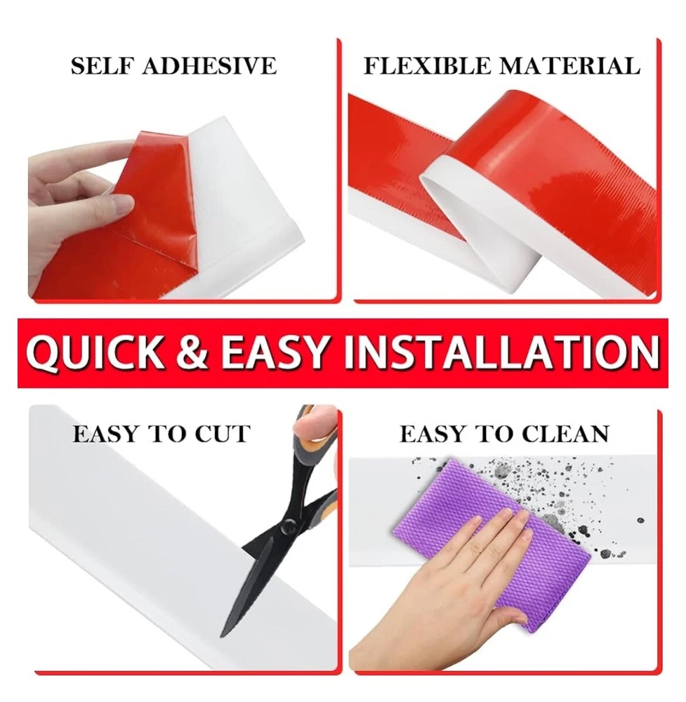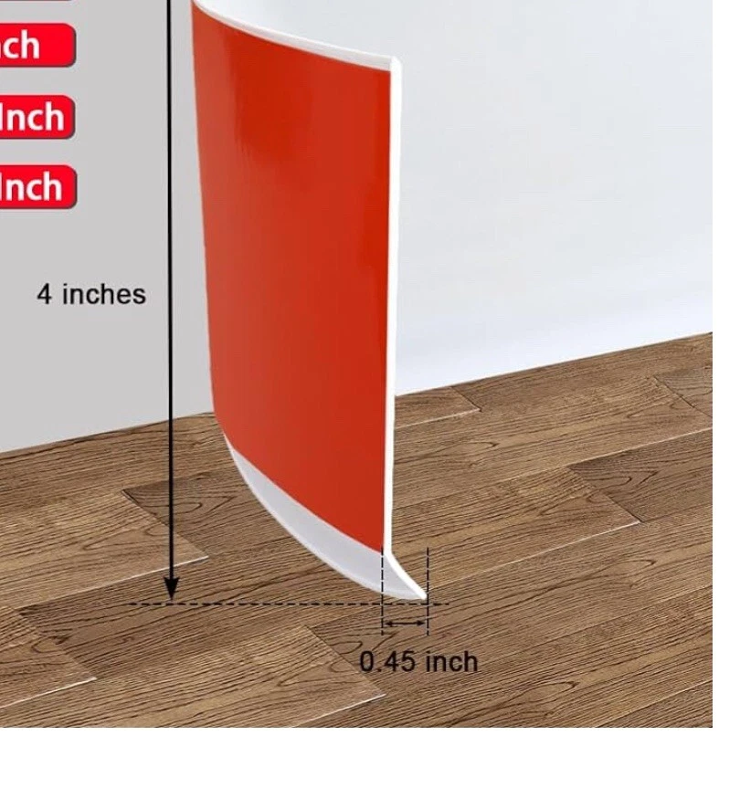 Vinyl Wall Base Baseboard Molding Trim 4" Flexible Self Adhesive Rubber Wall Base Moulding Trim Peel and Stick Design, 4 Inch x 50 Feet, White