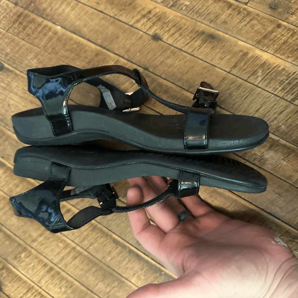 Vionic black, Adrian, travelcore, comfortable strappy sandals. Great arch support. Some wear on the toes, but overall in good condition. From a pet and smoke free house. Happy to bundle!