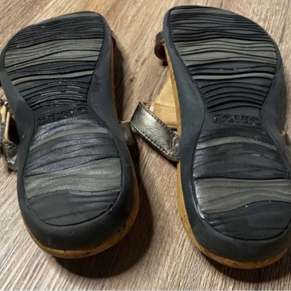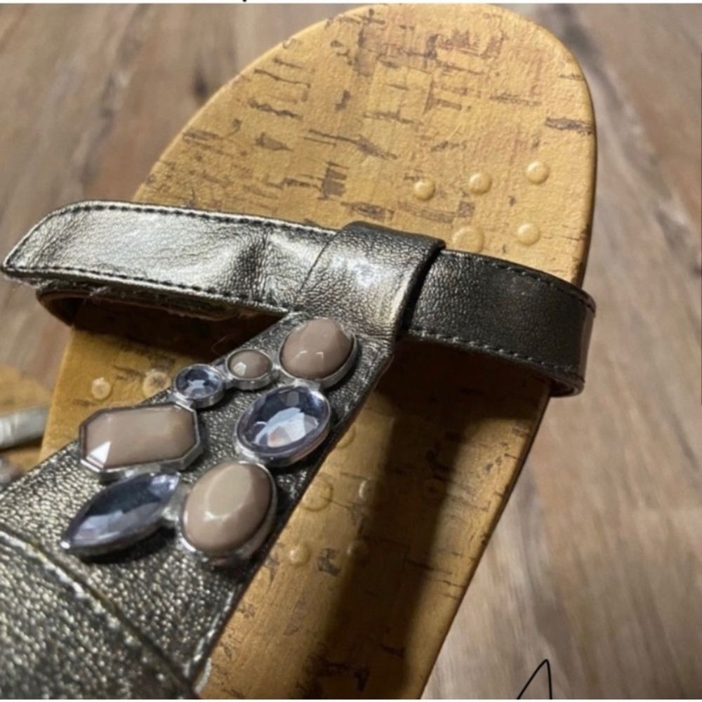 Vionic Size 8 euc (picture of back still a little damp from cleaning) Jeweled cork sandal Coastal beachy timeless sparkle vacation vaca Summer cruise island ocean boho bohemian chunky woodsy romantic feminine girly casual chic mystical festival boat yacht nautical classy modern elegant comfort