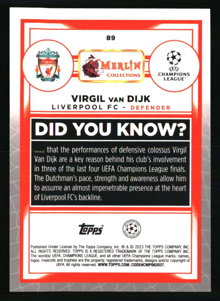 Virgil van Dijk 2022-23 Topps Merlin UEFA #89 SOCCER Card