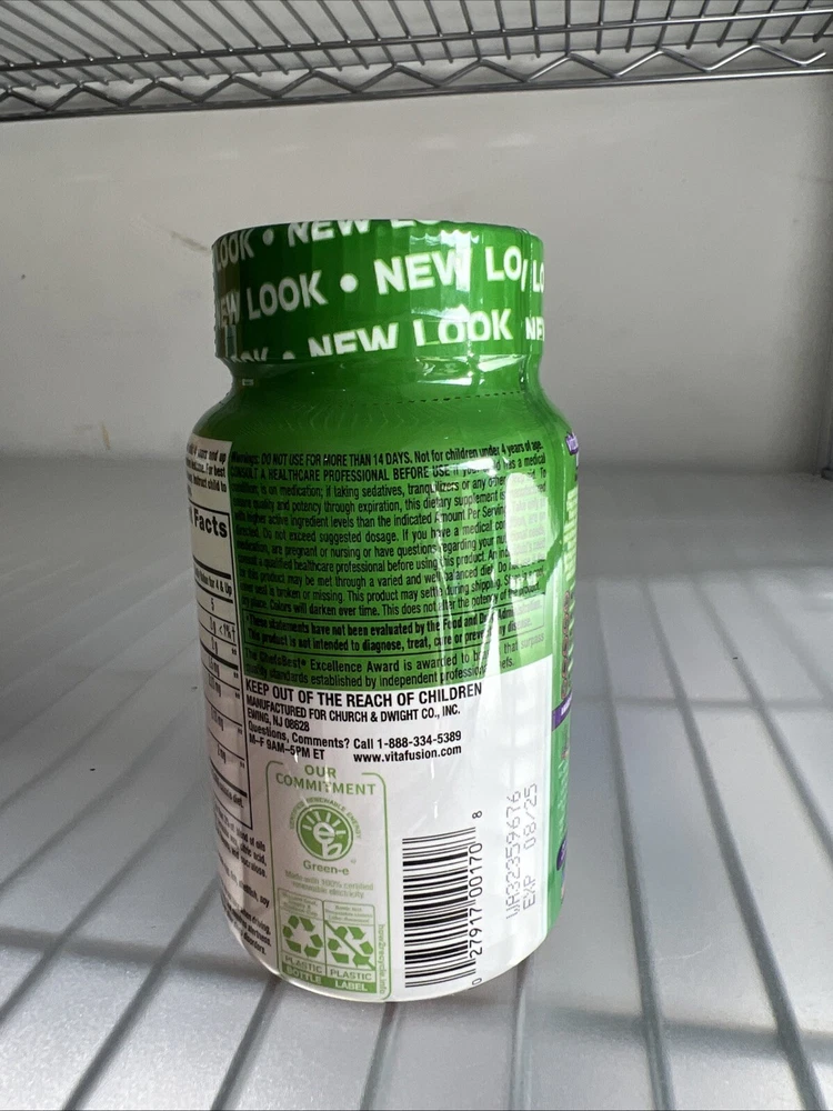 Number of Pills:50Dosage:1.5 mgItem model number:10027917001705Country/Region of Manufacture:Does not applyMain Purpose:Sleep SupportActive Ingredients:Passionflower (Passiflora)Ingredients:Water, Coconut Oil, Gelatin, Passionflower (Passiflora), ChamomileManufacturer:Church & Dwight - Nutrition & WellnessItem Weight:Does not applyDepartment:Does not applyType:Dietary SupplementFlavor:PeachBrand:vitafusionFormulation:Gummy, ChewableVolume:Does not applyFeatures:Dairy-Free, Gluten-Free, Sugar-Free, Animal Cruelty-Free, No High Fructose Corn Syrup, All Naturalgtin13:0027917001708When to Take:NightExpiration Date:Does not applyMPN:7C11Product Dimensions:2.38 x 2.38 x 4.5 inches; 5.36 ouncesUPC:0027917001708Type of Diet:Does not apply