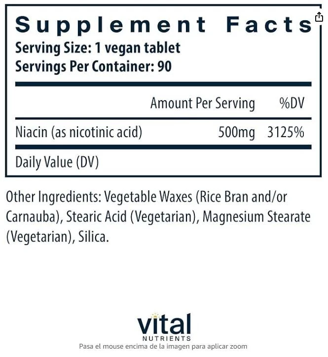 About This Item We aim to show you accurate product information. Manufacturers, suppliers and others provide what you see here, and we have not verified it. Niacin 500mg Extended Release tablets contain Niacin (vitamin B3), a water soluble vitamin with an important role in cellular metabolism.* Niacin has a very long history of clinical use in supporting heart health, and has been shown to support lipid metabolism including Triglycerides, Cholesterol, LDL, Lipoprotein (a) and HDL.* Niacin has an impressive record of nutritional supportive effects on cholesterol metabolism that are documented in numerous clinical trials.* Clinical studies also suggest niacin may also support the peripheral circulatory system and healthy fibrinogen production.* Vital Nutrients Niacin 500mg Extended Release Tablets contain a time-release matrix that slowly secretes niacin into the body, reducing the likelihood of flushing for most people.* Clinical trials have demonstrated bioavailability and tolerance of Vital Nutrients extended release Niacin. 1500 mg per day supports lipid metabolism.* Vital Nutrients mission is to manufacture superior quality nutritional supplements that exceed both industry and government standards and provide clinically effective results. They provide over 200 science-based and clinically effective products. They have a comprehensive quality assurance program to ensure that purity and potency is consistently met on every product that they manufacture. Vital Nutrients uses independent U.S. ethical laboratories to test all raw materials and finished products. Each raw material is tested, regardless of origin, for purity and potency. All finished products are tested through a real time stability protocol for expiration date validation. They are an FDA Inspected facility that exceeds FDA cGMPs, and a member of the NPA. Supports Healthy Cholesterol Levels: Niacin (Vitamin B3) is a water soluble vitamin which has been shown to support lipid metabolism including Cholesterol, LDL, and HDL as well as Lipoprotein (a) and Triglyceride levels* Promotes Cardiovascular Health: In addition to promoting lipid metabolism, niacin may also support the peripheral circulatory system and healthy fibrinogen production.* Time Release Formula: Our powerful time release matrix slowly secretes niacin into the body.* Does Not Contain: This product is free from gluten (wheat, rye, barley)*, milk/dairy (casein, whey)*, soy protein*, egg protein*, and sugar*. *Verified by independent testing. We test every ingredient we use and every finished product we make.¬FDA regulation (GMP Part 111) requires that manufacturers test ingredients and finished products. However, it allows manufacturers to perform minimal Äúskip lot testingÄù¬meaning only some of the ingredients are tested.¬Vital Nutrients has always exceeded these testing requirements by performing a significant number of additional tests on raw ingredients and finished products at¬independently certified U.S. labs. Labels may vary. Indications: Health Concern: Cholesterol Ingredients: Ingredients: Amount Per Serving: 1 tablet contain: Niacin (extended release) 500mg. Other ingredients: Vegetable Waxes (Rice Bran, and/or Carnauba), Stearic Acid (Veg), Magnesium Stearate (Veg), and Silica. Directions: Instructions: 1 tablet twice daily, or as directed by a healthcare practitioner. Specifications PPU Quantity of Units 1 Age Group Adult Vitamin & Supplement Type Niacin Product Name Vital Nutrients - Niacin Extended Release - Cholesterol, HDL, LDL, Triglyceride, LP(A) Support - 90 Extended Release Tablets per Bottle - 500 mg Manufacturer Vital Nutrients Price Per Unit UOM 1 Manufacturer Part Number VNNIA Contained Battery Type 1 Color White Multipack Quantity 1 Brand Vital Nutrients Body Part Body Assembled Product Weight 0.5 lbs Will be wrapped with care. ~ ~FREE SHIPPING~ Any questions, please feel free to contact us. Buy with confidence! Thanks for looking!