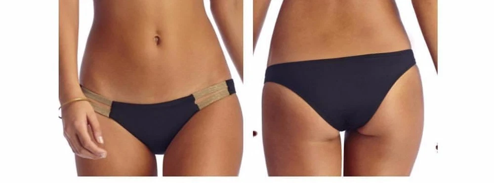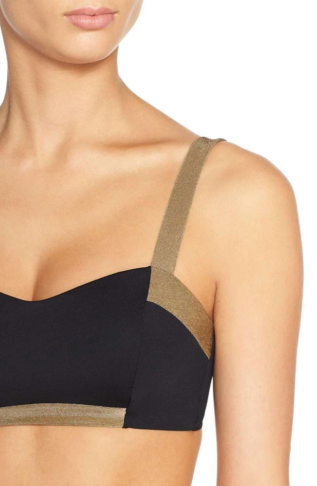 Vitamin A Ecolux Bikini Set Black Bronze Color Block Bikini Set Adriana Bustier Top & Neutra Bottom Bikini Set Vitamin A size chart w/ pics A beautiful bikini in color block of black and bronze giving it a chic luxurious look Style + Substance - EcoLux® is a superfine jersey with a subtle sheen Retail $206 (Top: $110 & Bottom: $96) Adriana Bustier Top This sleek, color-blocked bikini bralette is sporty yet curve-enhancing like a molded bustier. The polished aesthetic means the top can do double duty as a peekaboo layering piece. Sweetheart neck. Hook- eye closure Neutra Hipster A California-cut hipster inspired by modern architecture. Strappy insets create a graphic cutout effect. Moderate coverage back is designed to stay in place in the waves. Black - Bronze Color Block made in California from RECYCLED nylon fiber and LYCRA® XTRA LIFE™ fiber for a gorgeous, long-lasting fit. Shell: 83% Recycled nylon, 17% Lycra xtra life fiber Style# 156TBBB / 42BBBB