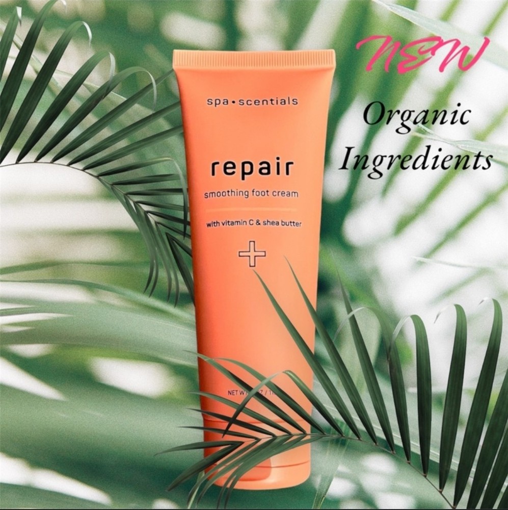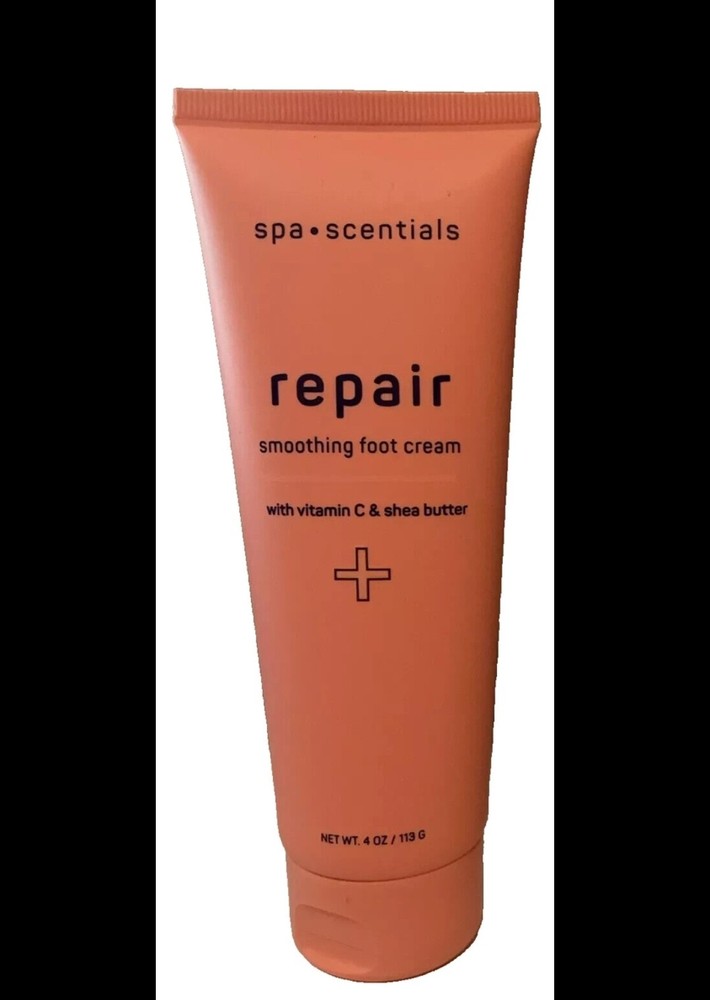 Spa Scentials Repair Smoothing Foot Cream, enriched with Vitamin C and shea butter. • 4 oz (118g) tube. • It is designed to moisturize and repair dry, rough feet, softening calluses, and cracked heels. • Vitamin C boosts collagen production and hydrates the skin. • Shea butter intensely moisturizes dry areas. • It is applied to clean, dry feet, concentrating on heels and dry spots, and massaged until absorbed. • It is sulfate and paraben-free. #SpaScentials #repair #Smoothingfootcream #vitaminc #sheabutter #moisturizing #hydrating #nourishing