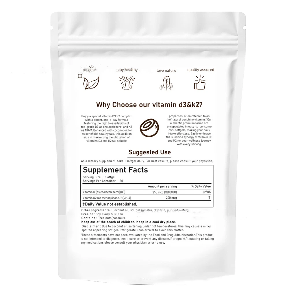 3X NAD+Supplement for Anti-Aging, Energy,Focus Nicotinamide Riboside Resveratrol 23.85 USD Sexy-Lingerie Sleepwear Women Satin Silk Babydoll Lace Nightwear Pajamas Set 11.99 USD Womens Satin Silk Robe Sexy Lingerie Nightdress Sleepwear Slip Dress Chemise 9.59 USD 7 Day Weekly Pill Box Organiser Medicine Tablet Storage Dispenser Case Box AM PM 12.86 USD 8 In. Heavy Duty Steel Curved Jaw Garden Pruners Clipper Pruning Shears Branches 9.87 USD 3 Pack 100% Wool Men Dress Socks Warm Thick Thermal Classic Crew Boot 5-10 21.98 USD Men’s Belts Full Grain Genuine Leather 1.5inch Width Casual Dress Jeans Belts 16.31 USD Women's Lace Lingerie Babydoll Sleepwear Underwear Jumpsuits G-string Nightwear 5.99 USD Lingerie+Underwear Sexy Women's Nightwear Dress Lace Sleepwear G-string Babydoll 13.99 USD Women's Sexy Lingerie Hollow Out Sleepwear Nightwear Babydoll Underwear Bra Sets 12.99 USD ARM** CLUB DE NUIT INTENSE MAN 3.6 FL OZ EAU DE TOILETTE 30.9 USD Electric Cervical Massager Neck Head Massage Relaxer Heating Vibration Pillow 51.99 USD Women's Sexy Lingerie Hollow Out Sleepwear Nightwear Babydoll Underwear Bra Sets 12.99 USD Complex Diet Drops – Best Natural Weight Management Drops for Men and Women 8.2 USD LadyTop Stay Up Thigh High Over the Knee Socks Extra Long Cotton Stockings Lot 7.79 USD Sexy Women Lace Thong G-string Panties Lingerie Underwear Crotchles T-back 8.49 USD Product Description Vitamin D3 K2 Supplement Softgels 180 Capsules Extra Strength D3 K2 Supplement Features -Micro Ingredients double strength 2 in 1 vitamin D3 + K2 coconut oil softgels. A bioavailable complex that contains D3 as cholecalciferol and K2 in its top grade menaquinone (MK7) form. -Each pouch offers 180 Capsules easy to consume mini coconut oil infused softgels. A potent one a day complex that provides natural sunshine vitamin synergy. 10,000 iu Vitamin D3 and 200 mcg vitamin K2 per serving. -Vitamin D3 K2 are essential micronutrients that work together to support bone and teeth health, while also promoting joint, immune, and heart support. -Fat soluble vitamins like D and K are more bioavailable when a fat source is present. The addition of the healthy MCT coconut oil offers a great fat for maximum nutrient intake. -Premium non-GMO vitamin D3 + K2 supplements. Made without soy, dairy, gluten, preservatives, flavors, and tree nuts. -Ingredients must pass our 3rd party lab tests to ensure a product that is safe, pure, and potent. Suggested Use: As a dietary supplement, take 1 softgel daily. For best results, please consult your physician. Package included 1x 180pcs Vitamin Capsules (bag packaged) Note: 1. Manual measurement tolerance may be 2-5g. 2. Due to differences between different monitors, the image may not reflect the actual color of the item. Thank you so much! Payment Returns Contact Us Shipping Feedback 1. We only accept eBay payments. 2. All payments must be made within 3 days after auction won. Item may be returned for refund or replacement within 30 days of the purchase date. Returned merchandise must be unused, in original packaging and include all accessories. Shipping costs are non-refundable. Please do not hesitate to leave us your 5 Star ★★★★★ of DSR positive feedback if you are satisfaction with our products ,delivery or services . If you have Any Questions Or Unsatisfied with your purchase, please Email us firstly to get a better solution before you leave a neutral or negative feedback, we work hard to make sure every customer 100% satisfied and resolve anyproblem for you. Please email us first in the following situations: 1.The item can't work properly. 2.The item broken on the post. 3.You bought or received the wrong items. 4.You have not received your shipment within the period. 5.Before you give us Negative feedback. 6.Before you open a case/return on eBay. All questions will be replied within 24 hours (Except Saturday and Sunday or holidays). Thank you for your kindness! 1. eBay Payments Confirmed Addresses Only. 2. No Delivery to Alaska and Hawaii or PR. 3. No P.O. Box and APO/FPO Delivery. 4. Tracking Number will be provided. 5. Domestic shipping is within the 48 Contiguous States of United States, the delivery time is between 2 and 8 days. Items will be shipped by UPS, USPS or Fedex within 3 business day after receiving full payment. 6. International shipping is from China, the delivery time is between 10 and 30 working days. As a seller , Positive Feedback is very important to us. We try our best to let our customers to be happy. If you have any question about your order, please contact us ,please let us know before you Leave the Negative feedback ,We are willing to do our best to make up for it, Thank you very much ! Payment 1. We only accept eBay payments. 2. All payments must be made within 3 days after auction won. Returns Item may be returned for refund or replacement within 30 days of the purchase date. Returned merchandise must be unused, in original packaging and include all accessories. Shipping costs are non-refundable. Please do not hesitate to leave us your 5 Star ★★★★★ of DSR positive feedback if you are satisfaction with our products ,delivery or services . Contact Us If you have Any Questions Or Unsatisfied with your purchase, please Email us firstly to get a better solution before you leave a neutral or negative feedback, we work hard to make sure every customer 100% satisfied and resolve anyproblem for you. Please email us first in the following situations: 1.The item can't work properly. 2.The item broken on the post. 3.You bought or received the wrong items. 4.You have not received your shipment within the period. 5.Before you give us Negative feedback. 6.Before you open a case/return on eBay. All questions will be replied within 24 hours (Except Saturday and Sunday or holidays). Thank you for your kindness! Shipping 1. eBay Payments Confirmed Addresses Only. 2. No Delivery to Alaska and Hawaii or PR. 3. No P.O. Box and APO/FPO Delivery. 4. T