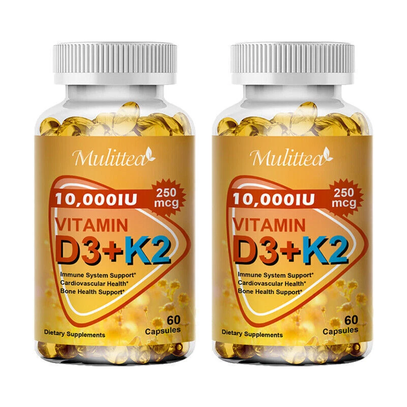 About the item: ✅2-in-1 Support: 5000 IU of Vitamin D3 and 200 mcg of Vitamin K2 (MK-7) . ✅Let your skin glow with sunshine - Often referred to as the sunshine vitamin, vitamin D is an important vitamin. Most people don't get enough vitamin D each day, and it's hard to get it from the diet. GPGP Greenpeople Vitamin D3 K2 5000 IU Capsules provide a reliable, powerful daily supplement of these essential nutrients. ✅Bone, Teeth, Immune System - Vitamin D contributes to the health of bones and teeth. Both vitamin D and vitamin K contribute to the maintenance of bones and are a perfect match. This formula uses a potent D3 form of vitamin D (cholecalciferol) and a high-quality MK-7 form of vitamin K2 (menaquinone). The perfect match: Vitamin K2 and D3 simply go together. Most people are aware of the benefits of vitamin D, but many don't realize that vitamin D requires vitamin K2 to maximize its benefits. ✅Strong bones and a healthy heart: This product not only promotes the absorption of calcium, but also properly distributes it to the places where the bones need it most. ✅Multivitamin (vitamin K2 and vitamin D3) to support your joint ability, internal circulatory function, dental health and immune system. ✅Best Quality: Non-GMO Verified, Vegan Certified, Whole Plant Based Vitamin K2+D3. No animal ingredients like lanolin or cow, no artificial colors, no flavors, no soy, no gluten. Description: 2-in-1 SUPPORT: 10000 IU (250mcg) of Vitamin D3 & Vitamin K2 MK-7 for Strong Bones and a Healthy Cardiovascular System.