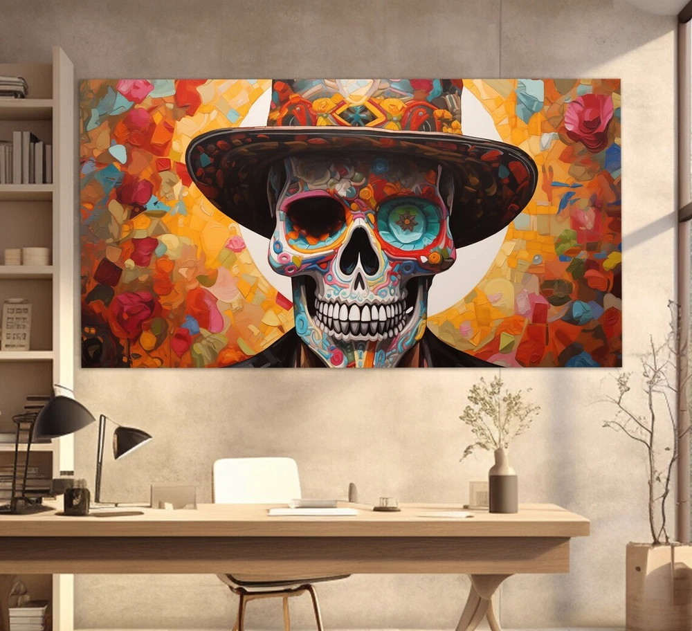Vivid Mexican Skull Abstract Skeleton Unframed Canvas Print Australian Wall Art