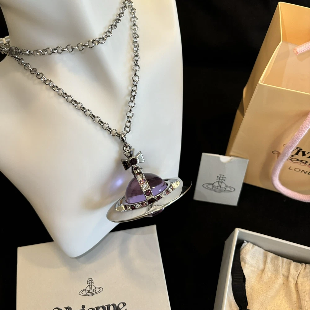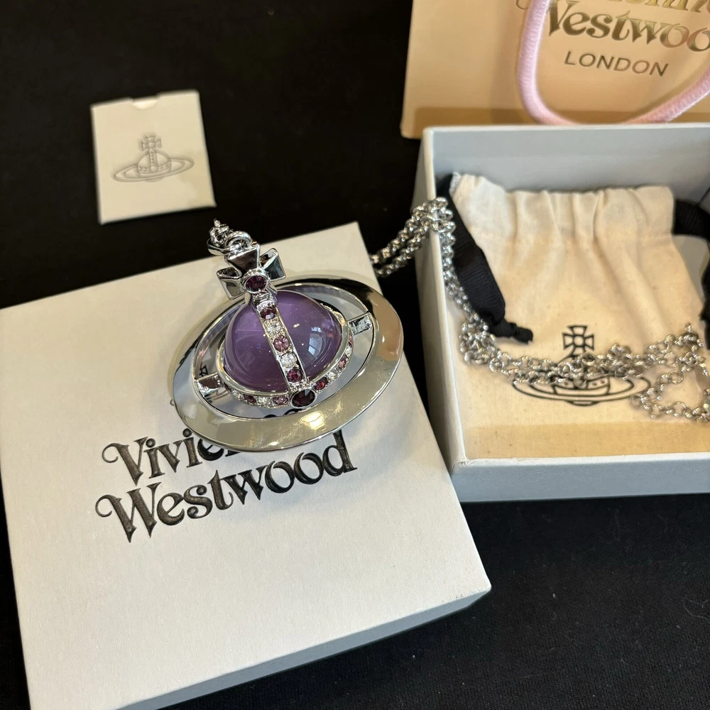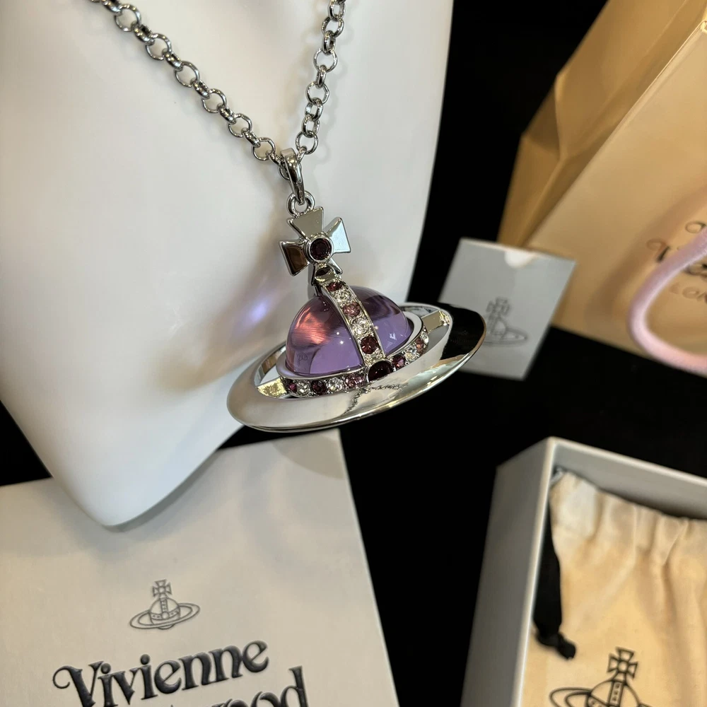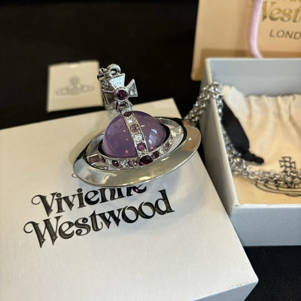 Color: Clear Metal: Silver Main Stone: Crystal Main Stone Color: Purple Style: Purple Brand: Vivienne Westwood Type: Necklace