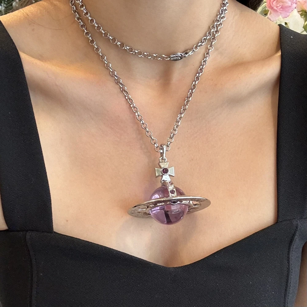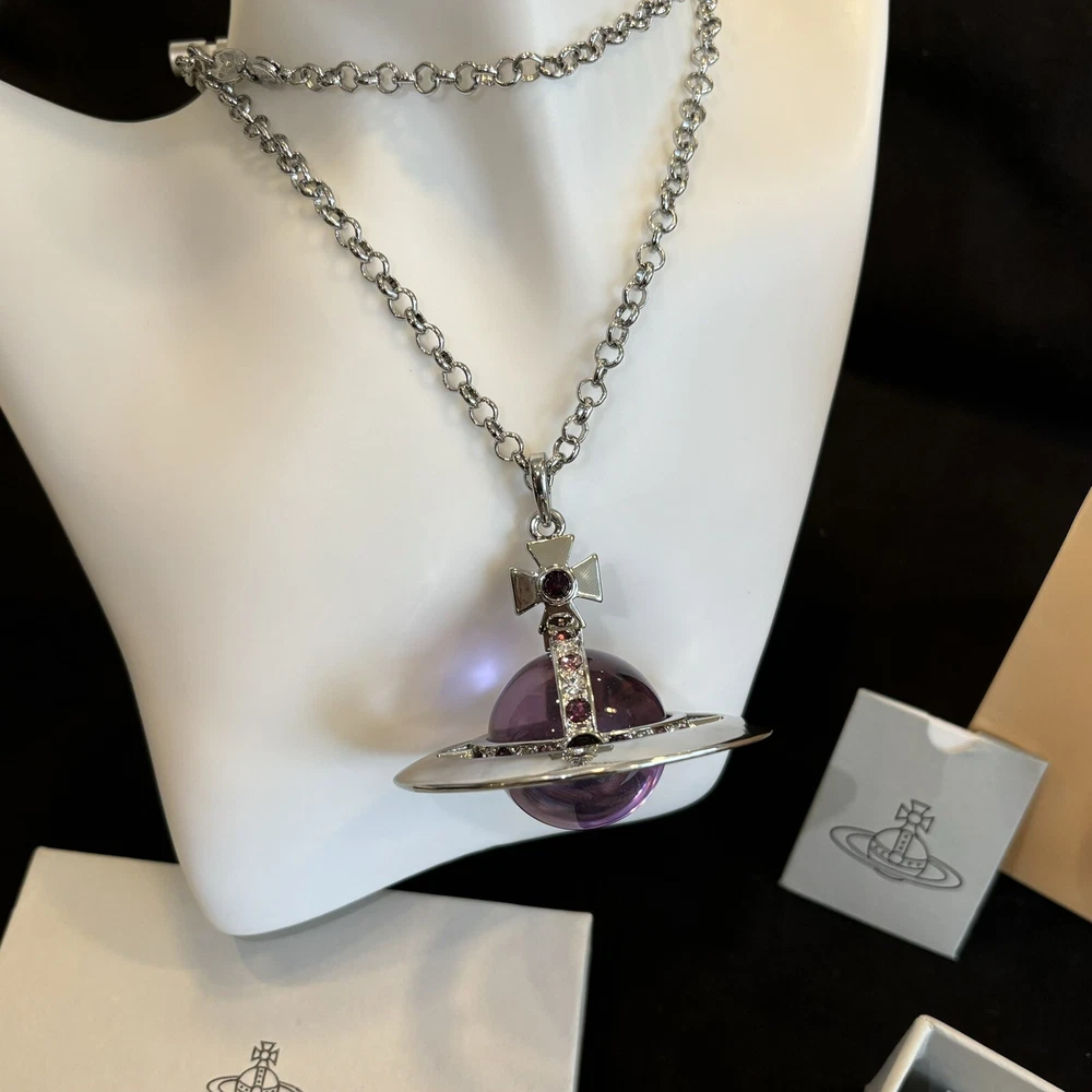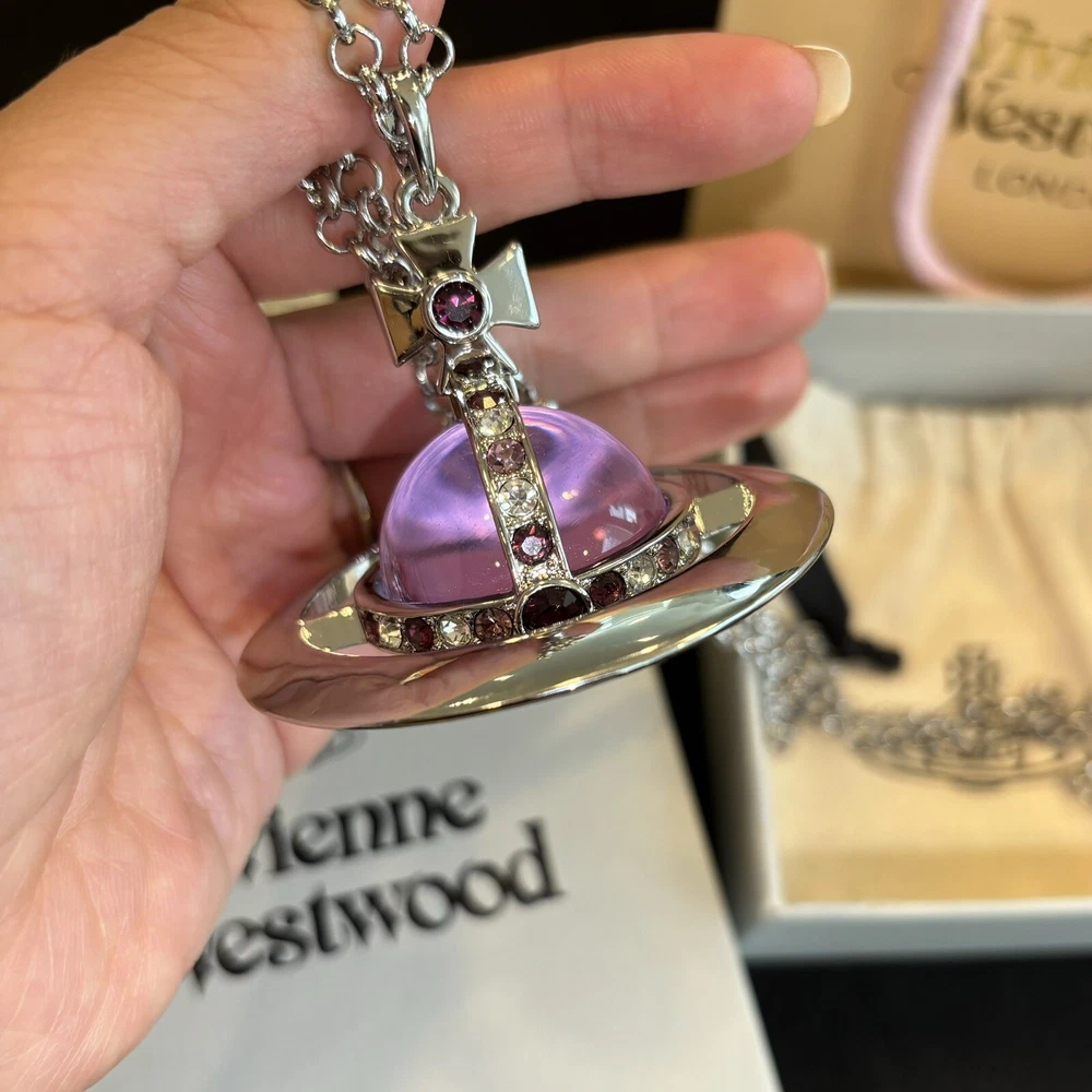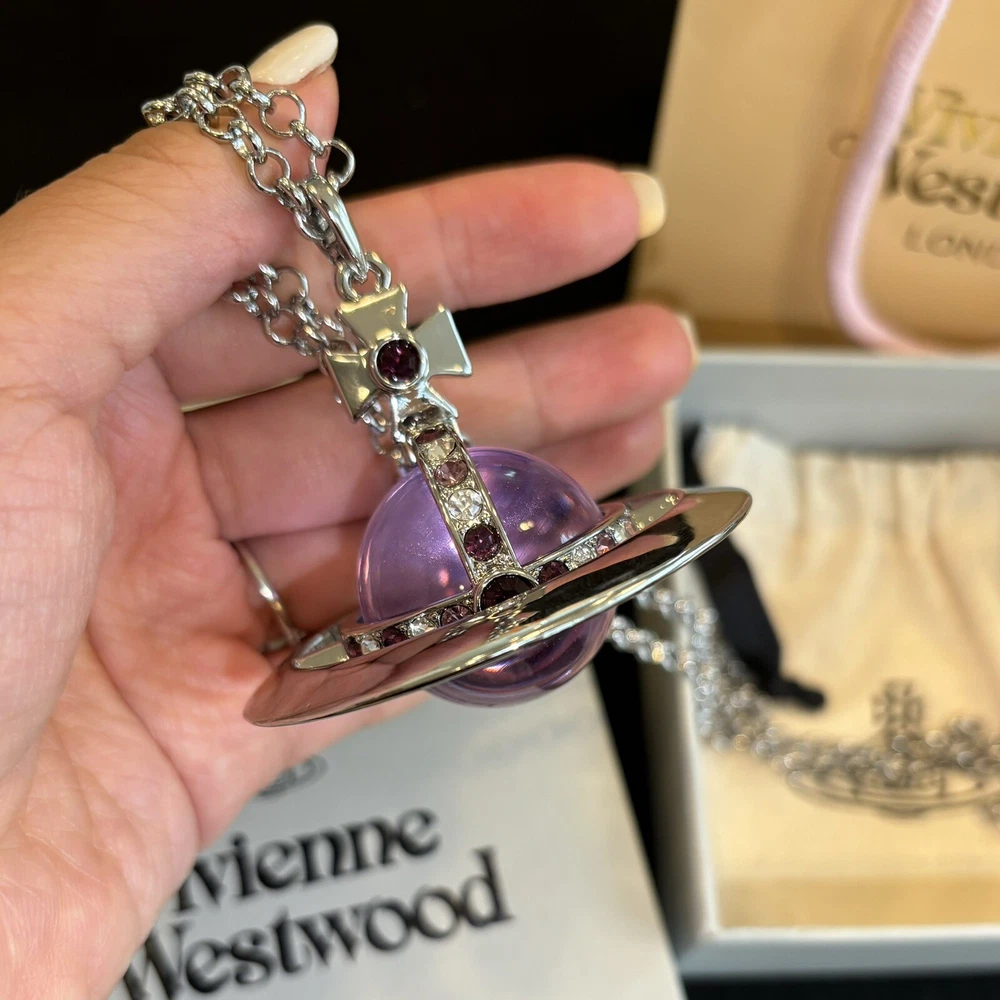 Color: Clear Metal: Silver Main Stone: Crystal Main Stone Color: Purple Style: Purple Brand: Vivienne Westwood Type: Necklace