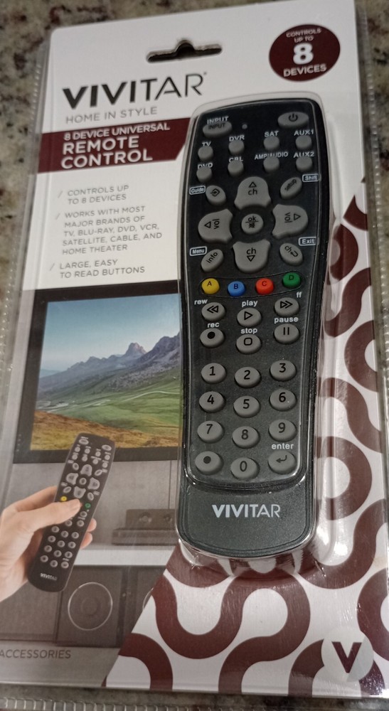 Vivitar VIV-IMP-520 Universal Remote Control. This control is a perfect replacement for your old one. The Vivitar VIV-IMP-520 is a programmable universal remote control for television, AV components, and cable and satellite boxes. It can control up to 8 different devices with a wireless range of 5-10 meters. With its wireless connectivity and easy-to-use features, this device was made to make your viewing experience simpler than ever!