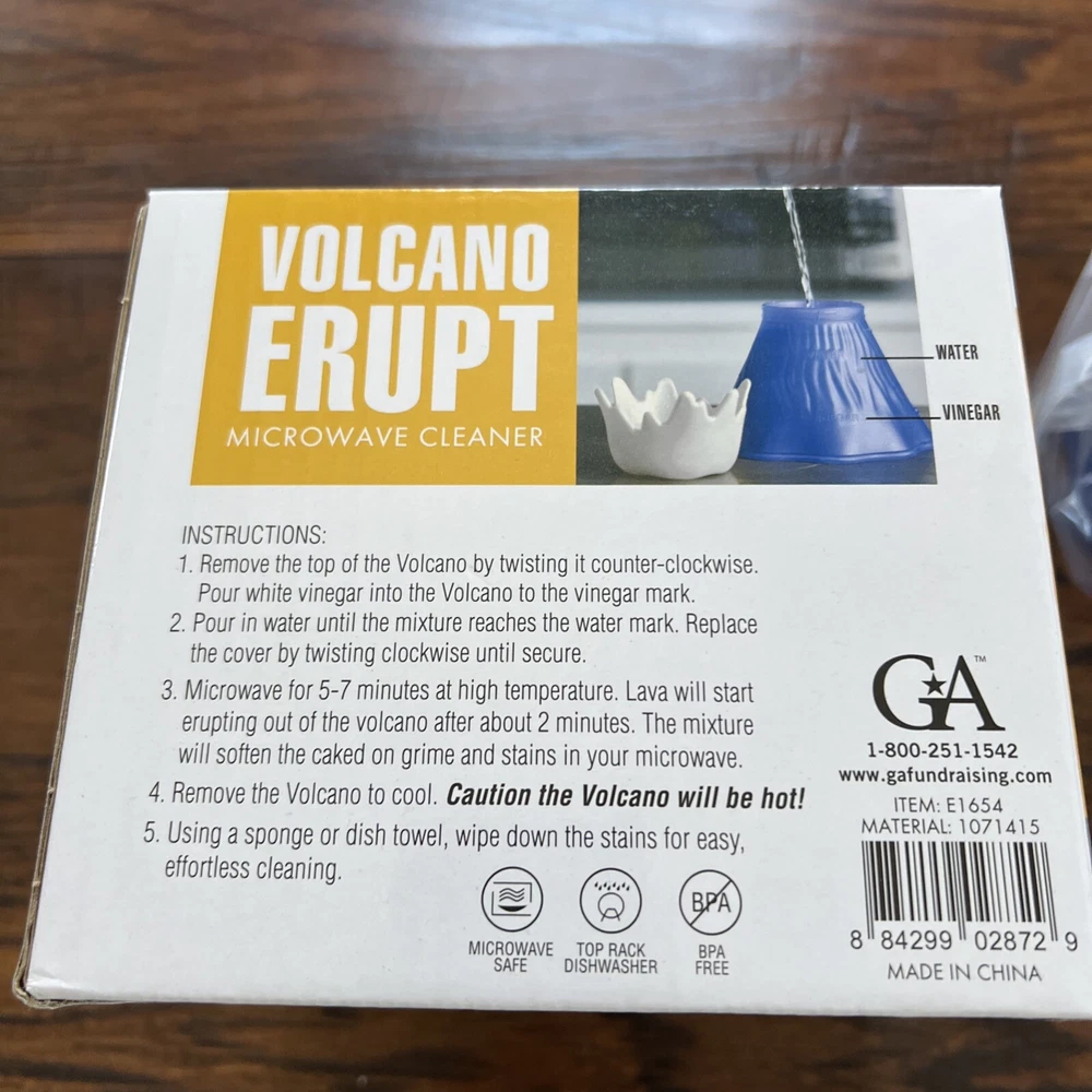 The Volcano Erupt Microwave Oven Cleaner is a surface cleaner specifically designed for microwaves. It comes in a steam form with a capacity of 250ml and is non-toxic and eco-friendly. This cleaning tool is scent-free weighing 5 oz. It offers a convenient and efficient way to clean your microwave without the use of harsh chemicals, making it a safe and environmentally friendly choice for maintaining a clean kitchen.