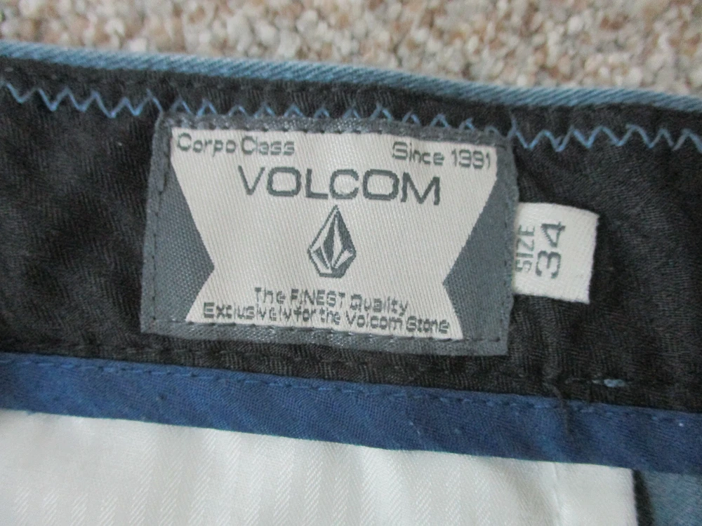 Rise: Mid (10-12 in) Waist Size: 34 in Color: Blue Style: Chino Size: 34 Pocket Type: Slash Pocket Garment Care: Machine Washable Country/Region of Manufacture: Mexico Brand: Volcom Department: Men Size Type: Regular Front Type: Flat Front Seller Notes: “Very Good Used Condition. Please, See Pictures for Full Condition and Measurements.” Material: Cotton, Cotton Blend Fabric Wash: Dark Theme: Logo, Modern, Outdoor Fit: Regular Pattern: Solid gtin13: Does not apply Features: Easy Care, Pockets Season: Fall, Spring, Summer, Winter UPC: Does not apply Occasion: Casual Accents: Button, Logo Closure: Zip Inseam: 11 in