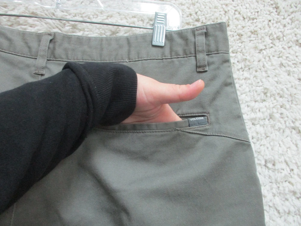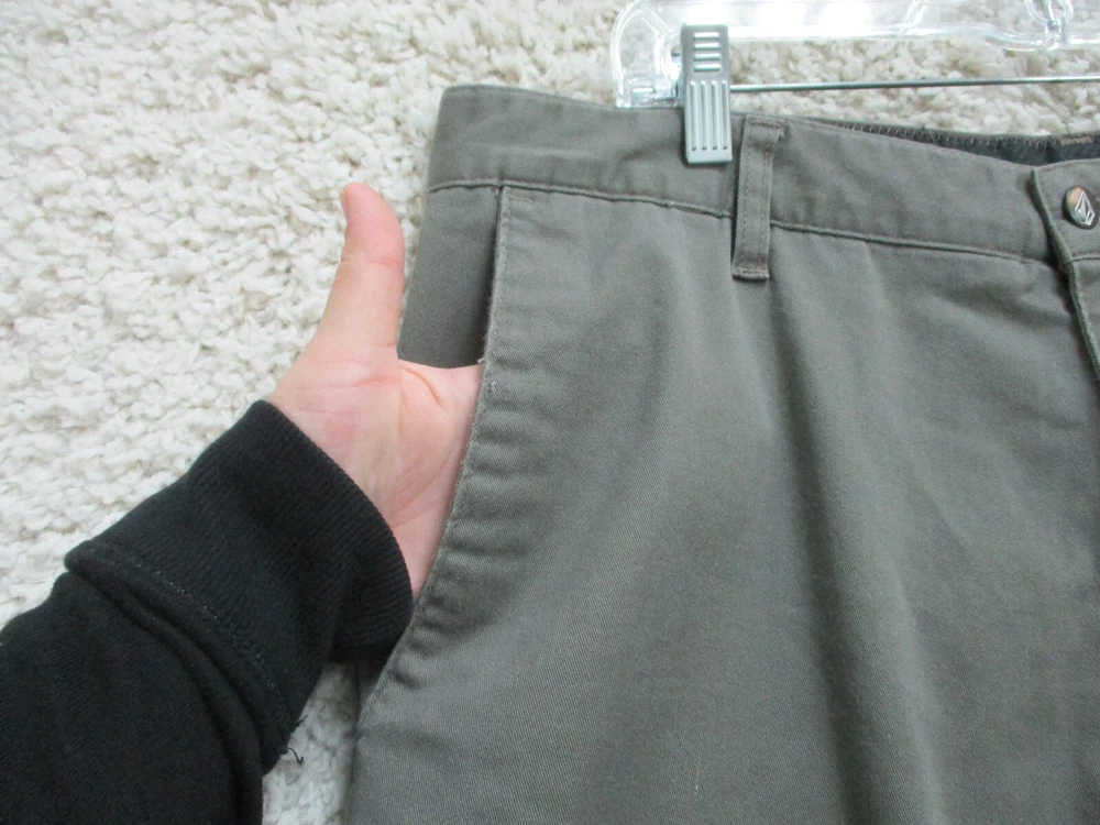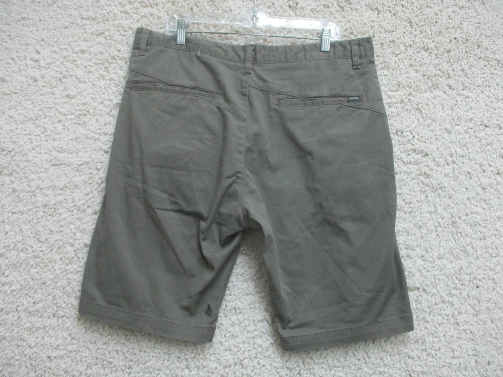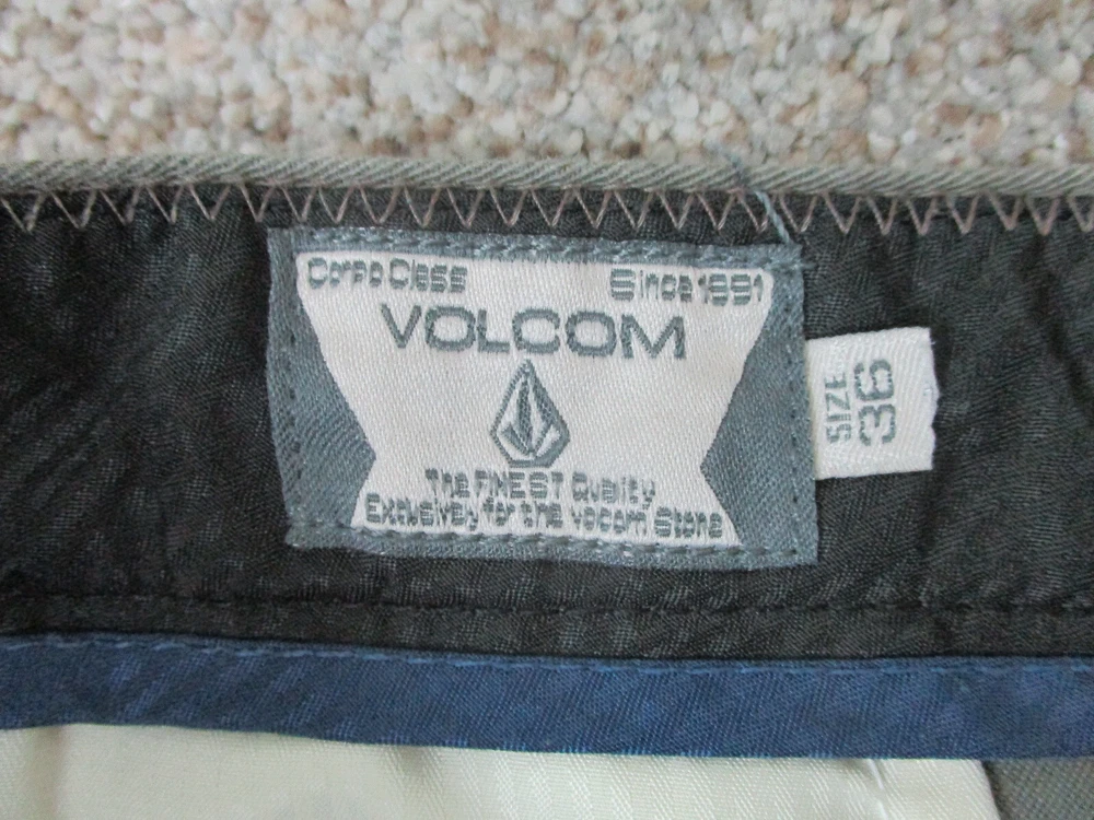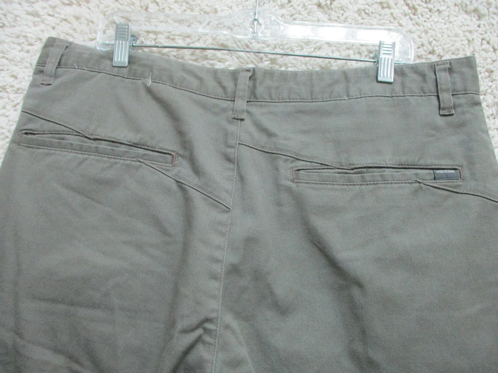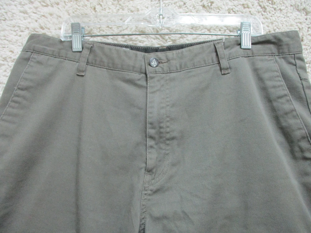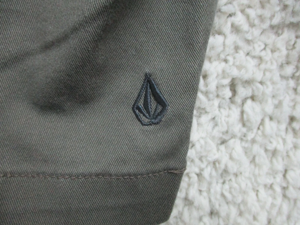 Color: Gray Accents: Button, Logo Fit: Regular Fabric Wash: Dark gtin13: Does not apply Pocket Type: Slash Pocket Material: Cotton, Cotton Blend, Polyester Pattern: Solid Theme: Logo, Modern, Outdoor Size: 36 Size Type: Regular Inseam: 11 in Waist Size: 36 in Seller Notes: “Very Good Used Condition. Please, See Pictures for Full Condition and Measurements.” Closure: Zip Brand: Volcom Front Type: Flat Front UPC: Does not apply Rise: Mid (10-12 in) Occasion: Casual Style: Chino Features: Easy Care, Pockets Garment Care: Machine Washable Season: Fall, Spring, Summer, Winter Country/Region of Manufacture: Mexico Department: Men