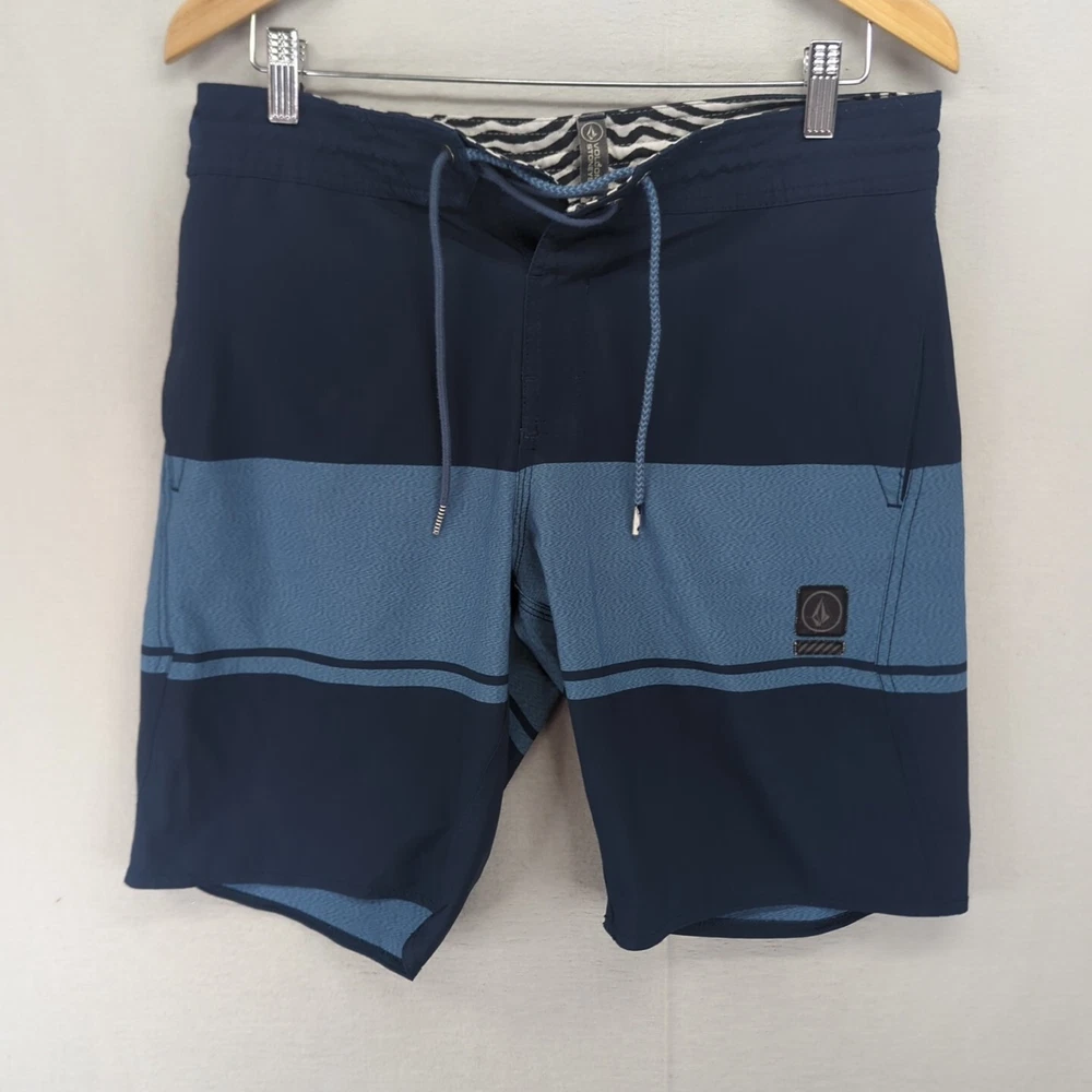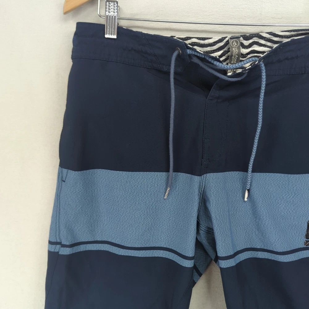 Volcom Stone Board Short Swim Trunks Blue Colour Block Stoney's Size 30 Mens Waist: 40cm approx. Waist to Hem: 51cm approx. * PLEASE NOTE THE SIZING PROVIDED. THESE ARE APPROXIMATE MEASUREMENTS. Disclaimer:product colour may slightly vary due to photographic lighting sources or your monitor settings