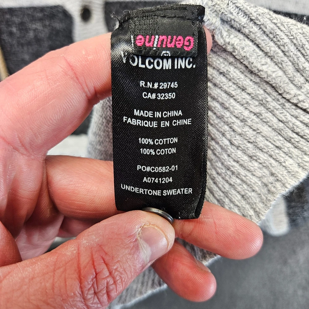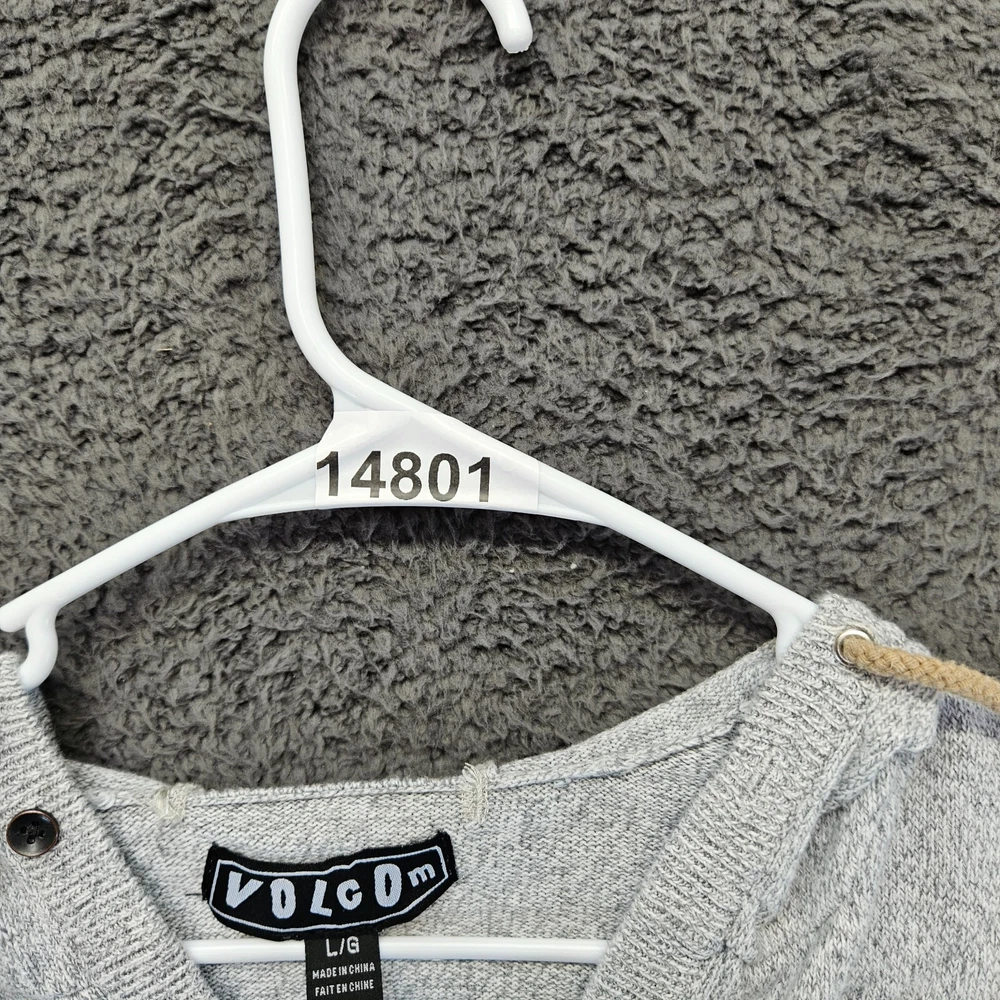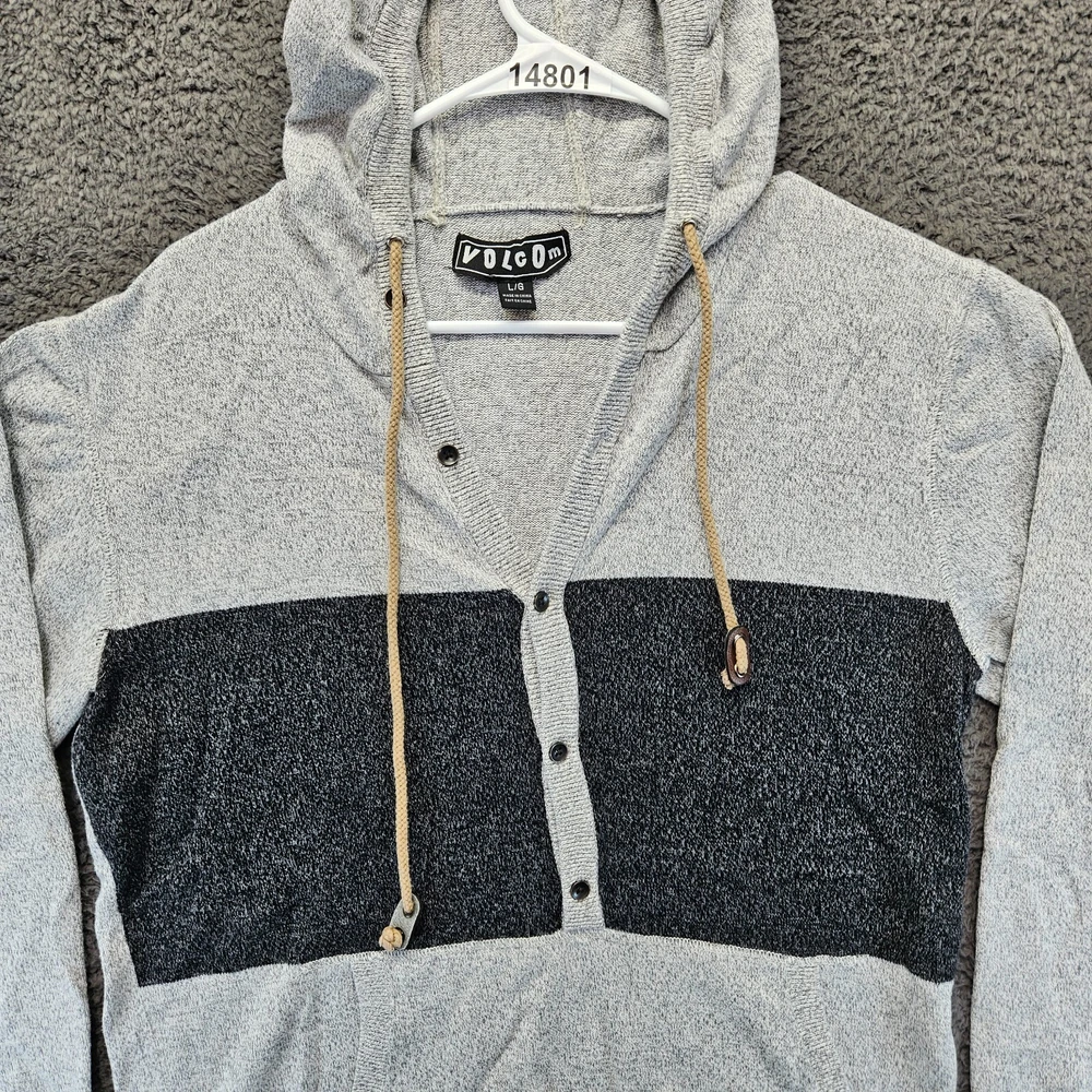 Neckline: Henley Sleeve Length: Long Sleeve Pattern: Colorblock Size: L Season: Fall, Spring, Winter Knit Style: Tight-Knit Type: Sweater Brand: Volcom Material: Cotton Department: Men UPC: Does not apply Occasion: Casual, Travel Size Type: Regular Color: Gray/Black Country/Region of Manufacture: China Fabric Type: Knit Features: All Seasons Style: Pullover gtin13: Does not apply